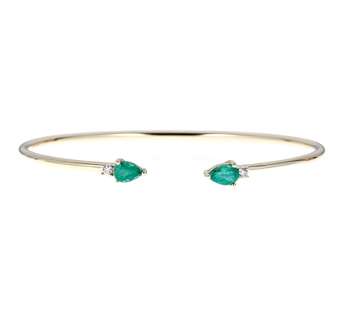 Lora 10K Yellow Gold Pear-Cut Zambian Emerald Bangle