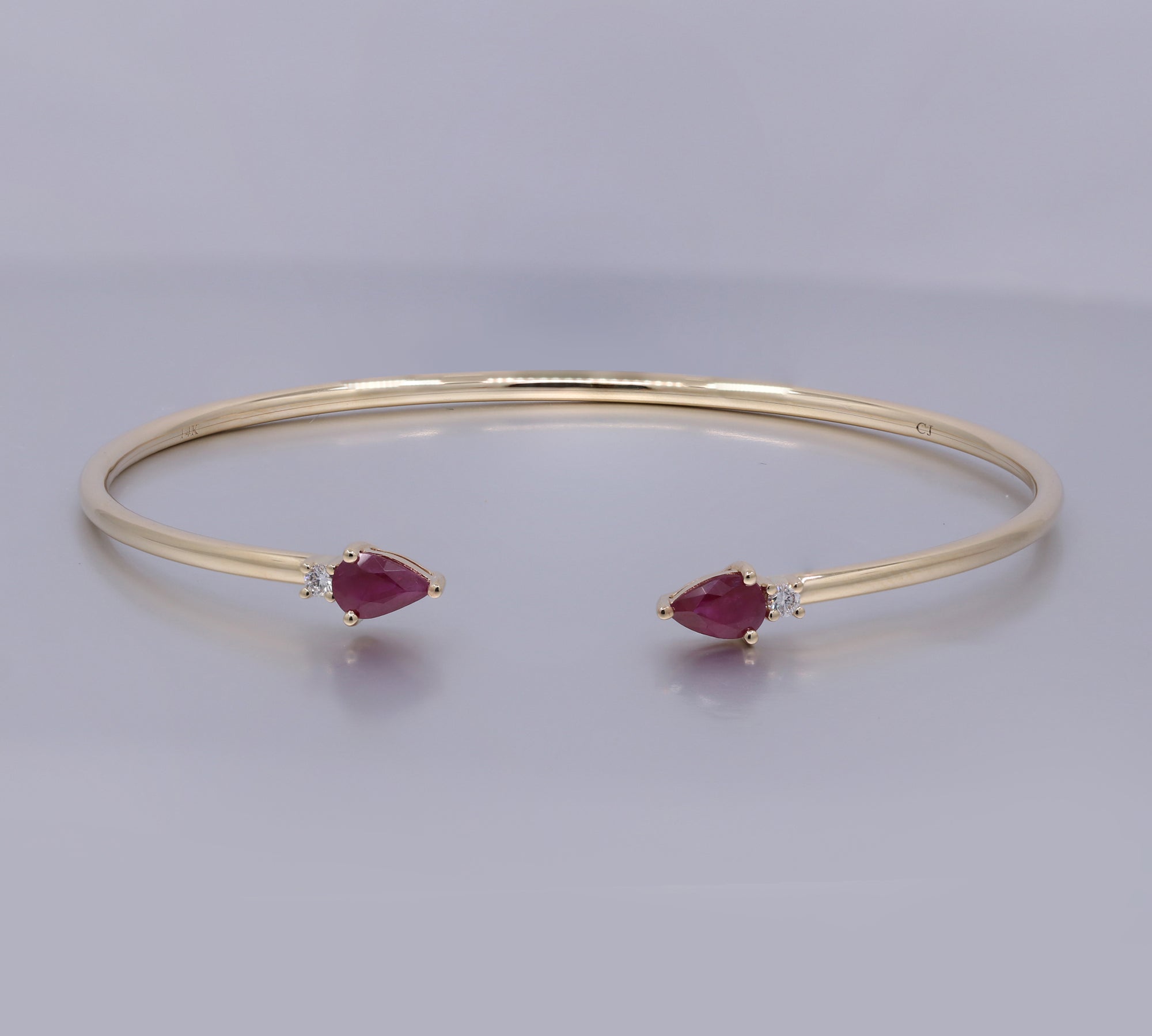 Ximena 10K Yellow Gold Pear-Cut Mozambique Ruby Bangle