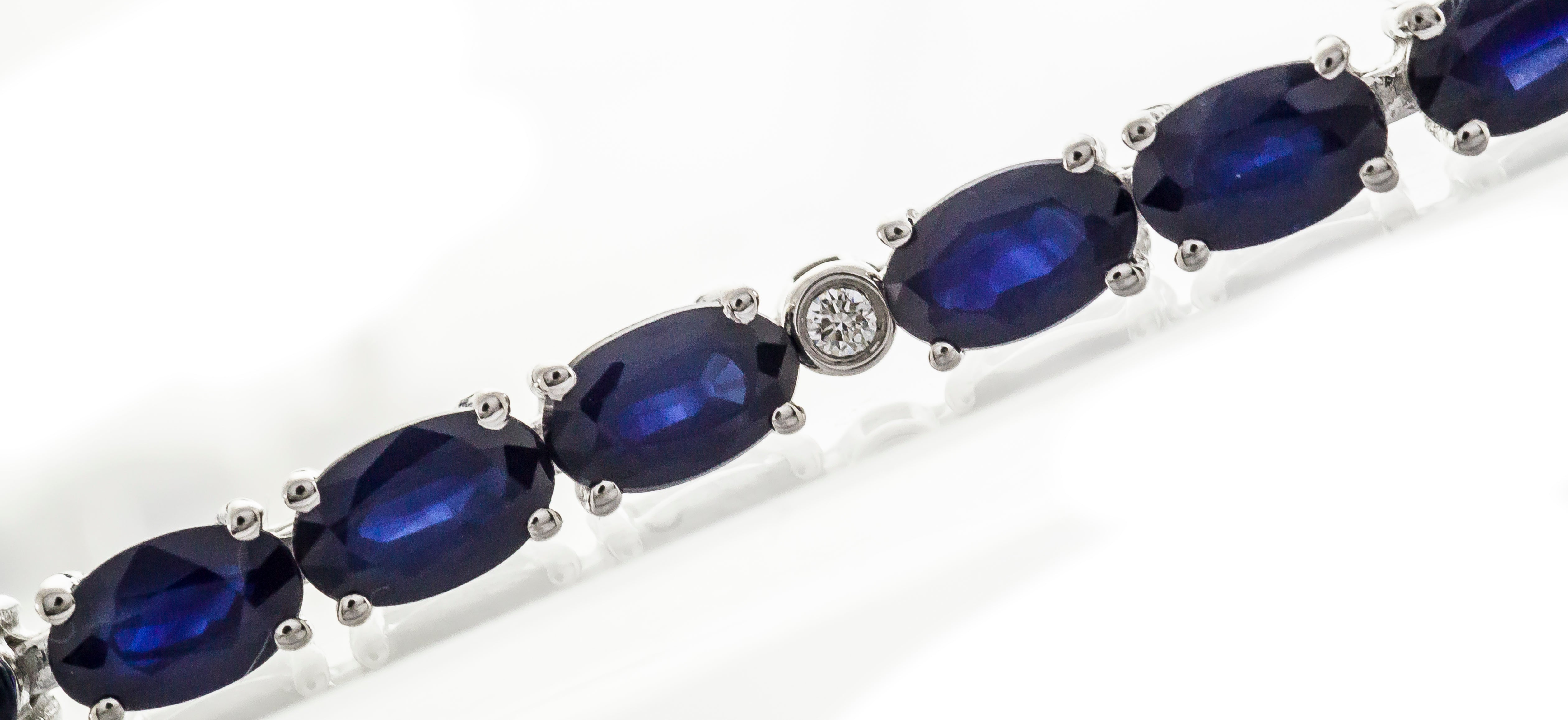 Stunning, timeless and classy eternity Unique Bracelet. Decorate yourself in luxury with this Gin & Grace Bracelet. The 10K White Gold jewelry boasts Oval-Cut Prong Setting Natural Blue Sapphire (33 pc) 9.29 Carat, along with Natural Round cut white Diamond (7 Pcs) 0.07 Carat, accent stones for a lovely design. This Bracelet is weight 6.90 grams. Crafted with 10K White Gold, this delicate Bracelet is polished to a high finish shine.