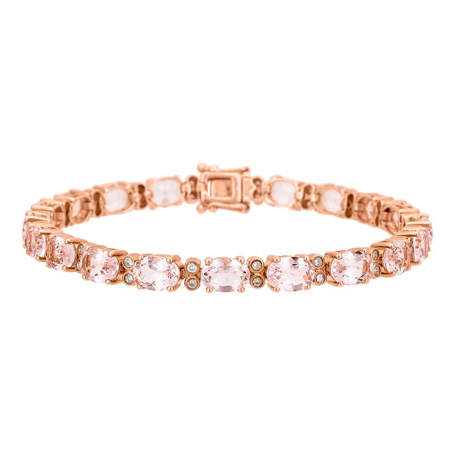 Comprised of 14k rose gold, this jewelry is the ideal way to showcase your style. The piece features morganite stones as well as 1/2 carat of sparkling diamonds for a gorgeous design. Style: Link Gemstone colors: Pink Gemstone shapes: Oval 20 Prong-set Oval-cut Gin & Grace Genuine Madagascar Morganite each measure 5 mm wide x 7 mm long Gemstone weight: 14 33/96 carats Total gemstone weight: 14 33/96 carats Diamonds:40 Diamond cut: Round-cut measure 1 mm Diamond weight: 47/96 Carat Color: G-H Clarity: I1-I2 Setting: Prong-set Metal: 14K Rose Gold Finish: High polish Clasp: Box Metal weight: 12.40 grams Bracelet dimensions: 5 mm wide x 7.25 inches long x 4 mm