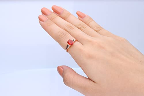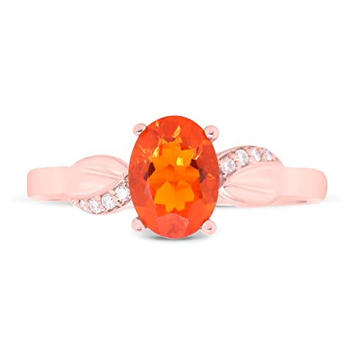 Decorate yourself in elegance with this Ring is crafted from 10-karat Rose Gold by Gin & Grace. This Ring is made up of 6*8 Mexican Fire Opal Oval-cut (1 pcs) 0.93 and Round-cut Diamond (8 pcs) 0.04 Carat. This Ring is weight 2.08 grams. This delicate Ring is polished to a high finish shine.