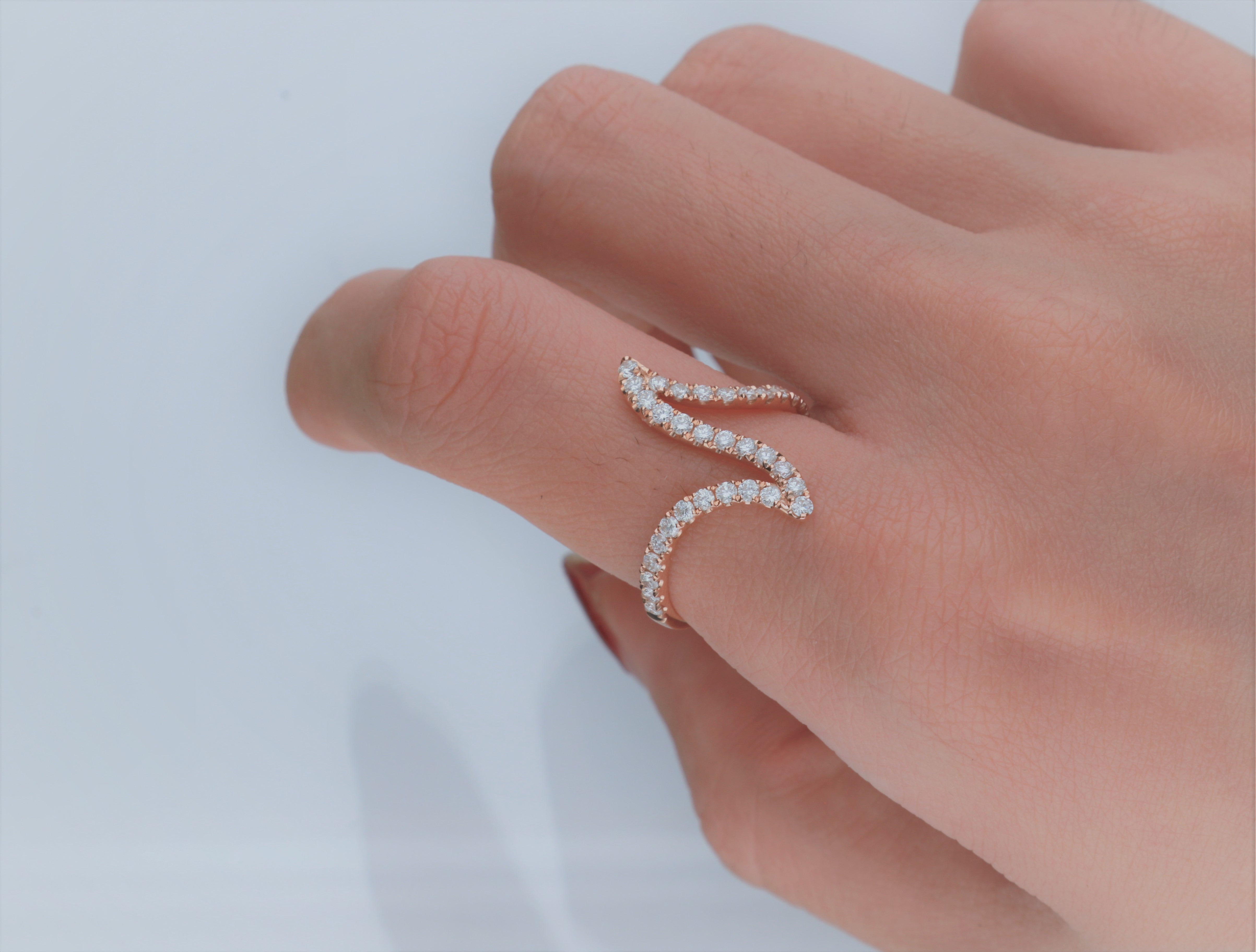 Decorate yourself in elegance with this Ring crafted from 10-karat Rose Gold by Gin & Grace. This Ring is made up of a Round-Cut White diamond (34 pcs) 0.62 carat. This Ring weighs 1.91 grams. This delicate Ring is polished to a high finish shine.