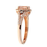 Decorate yourself in elegance with this Ring is crafted from 14-karat Rose Gold by Gin & Grace. This Ring is made up of 6*8 mm Oval-cut (1 pcs) 1.25 carat Madagascar Morganite and Round Cut Diamond (66 Pcs) 0.31 Carat. This Ring is weight 2.71 grams. This delicate Ring is polished to a high finish shine.