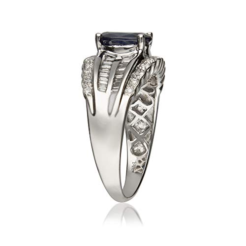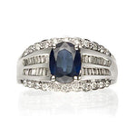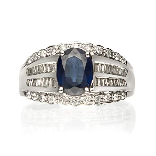 Stunning, timeless and classy eternity Unique ring. Decorate yourself in luxury with this Gin & Grace ring. The 14K White Gold jewelry boasts Oval-Cut Prong Setting Genuine Ceylon Blue Sapphire (1 pcs) 1.77 Carat, Baguette- Shape Natural Diamond (37 Pcs) 0.19 Carat and Round-Cut Prong Setting Natural Diamond (22 pcs) 0.18 Carat accent stones for a lovely design. This ring is weight 4.83 grams. Crafted with 14K White Gold, this delicate Ring is polished to a high finish shine.
