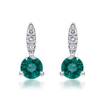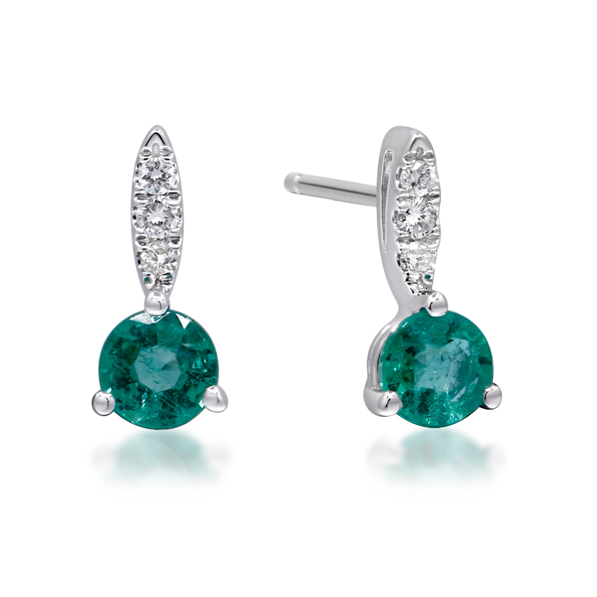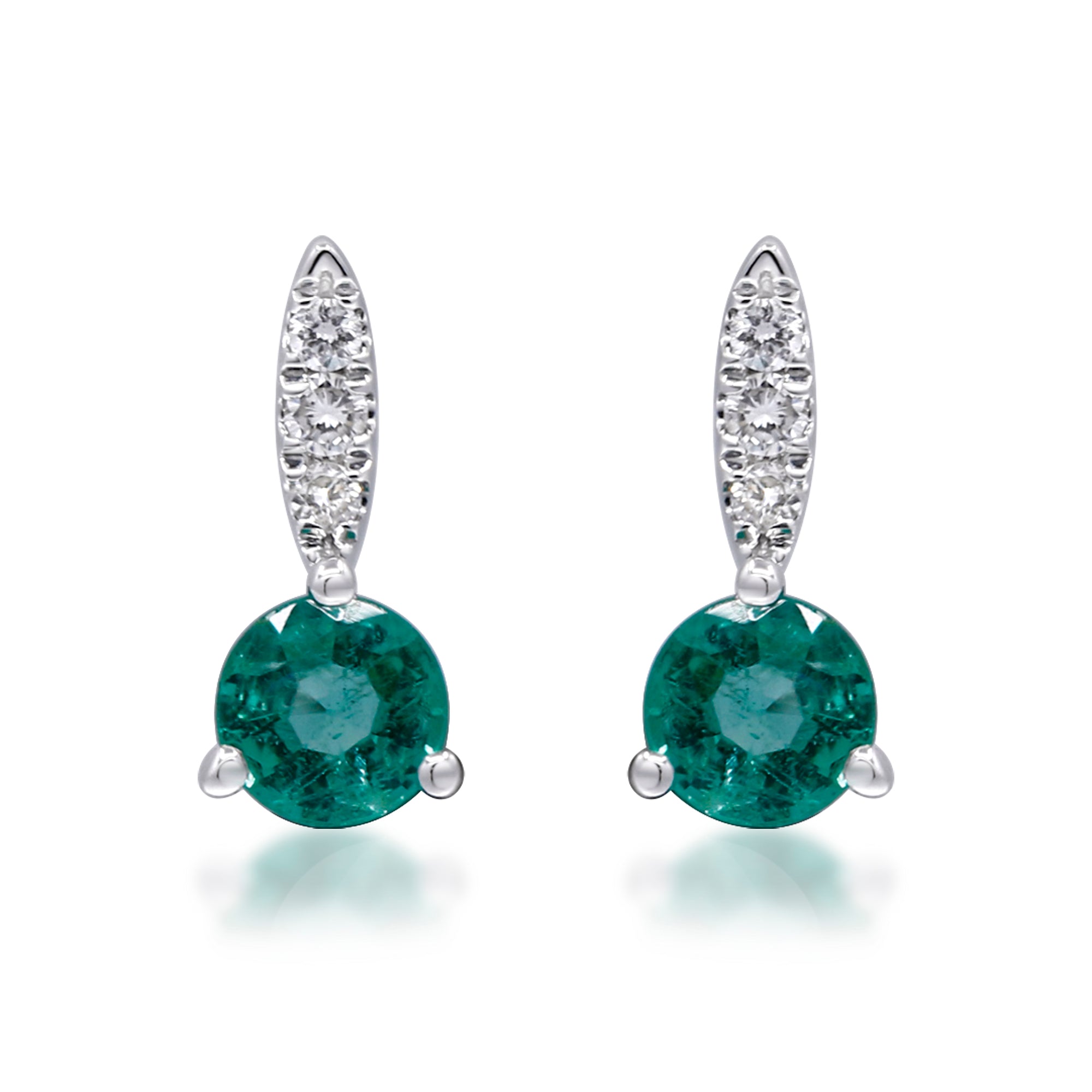 Decorate yourself in elegance with this Earring crafted from 14-karat White Gold by Gin & Grace. This Earring is made up of Zambian Emerald 4.0 mm Round- cut (2 pcs) 0.54 carat and Round-cut Diamond (6 Pcs) 0.06 Carat. This Earring weighs 1.16 grams. This delicate Earring is polished to a high finish shine.