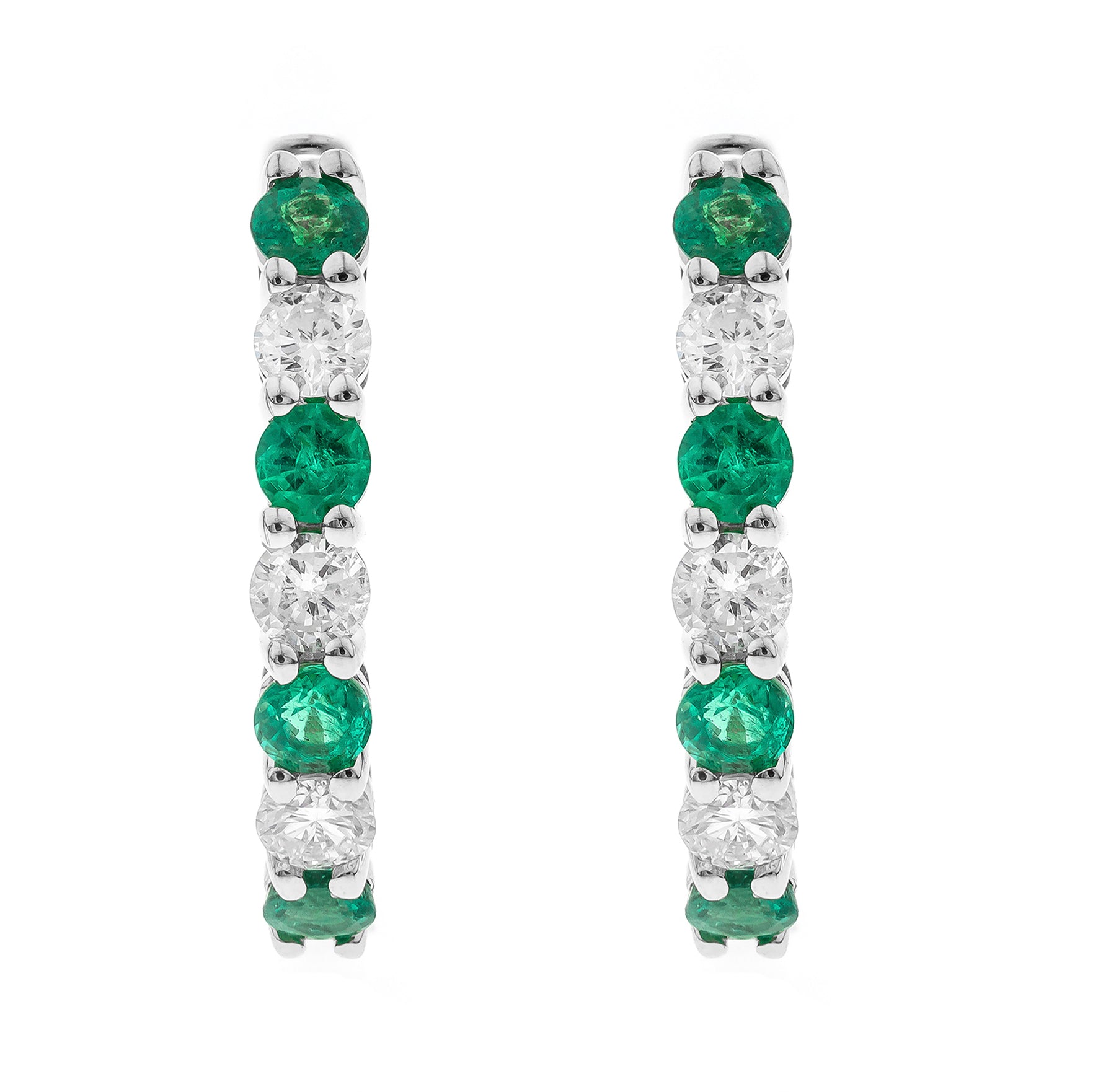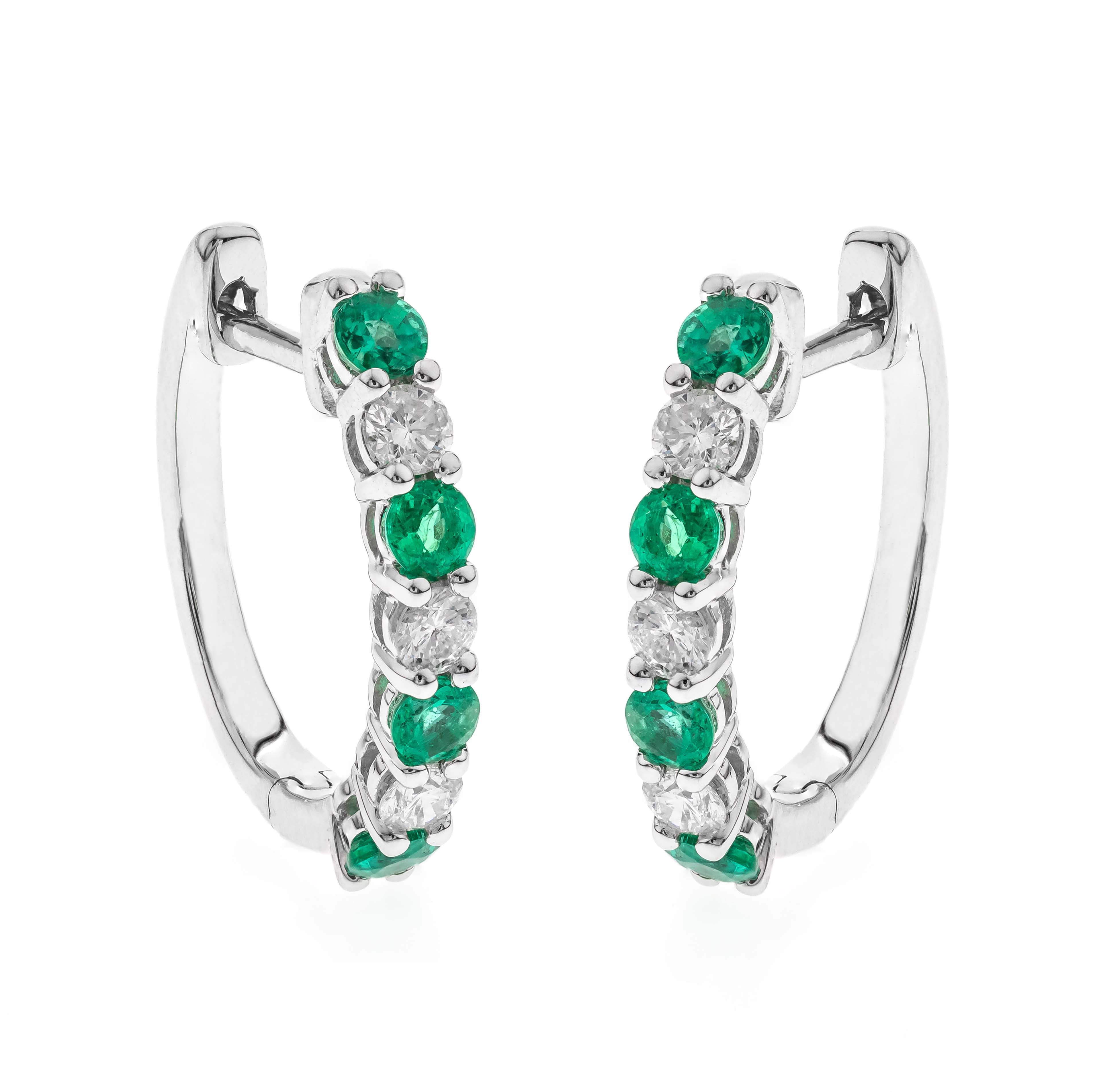 Decorate yourself in elegance with this Earring is crafted from 14-karat white Gold by Gin & Grace. This Earring is made up of 2.5 mm Zambian Emerald Round-cut (8 pcs) 0.54 carat and Round-cut White Diamond (6 Pcs) 0.35 Carat. This Earring is weight 3.00 grams. This delicate Earring is polished to a high finish shine.