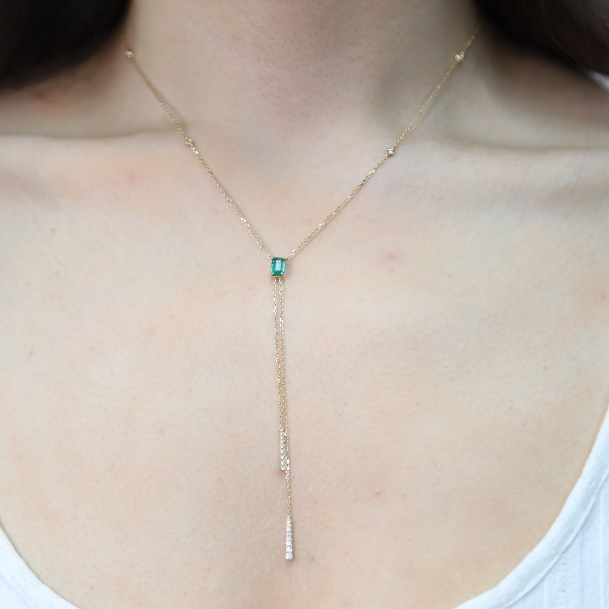 Brynlee 14K Yellow Gold Emerald-Cut Emerald Necklace