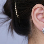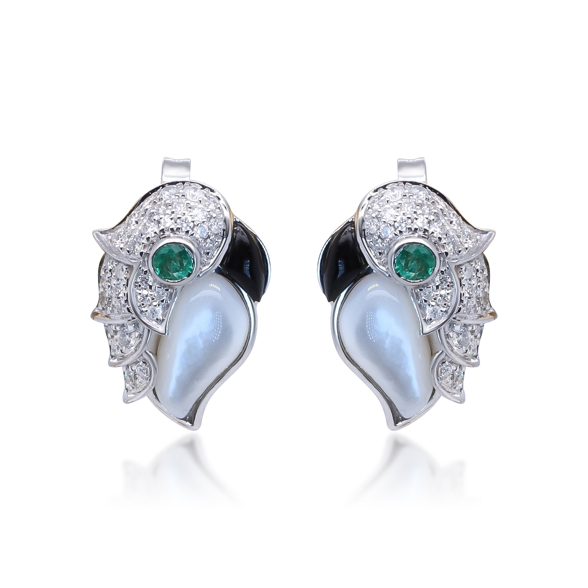 Decorate yourself in elegance with this Earring crafted from 14K White Gold by Gin & Grace. This Earring is made up of Zambian Emerald Round-Cut (6 pcs) 2.49 carat and Round-cut Diamond (62 Pcs) 0.34 Carat. This Earring weighs 4.26 grams. This delicate Earring is polished to a high finish shine.