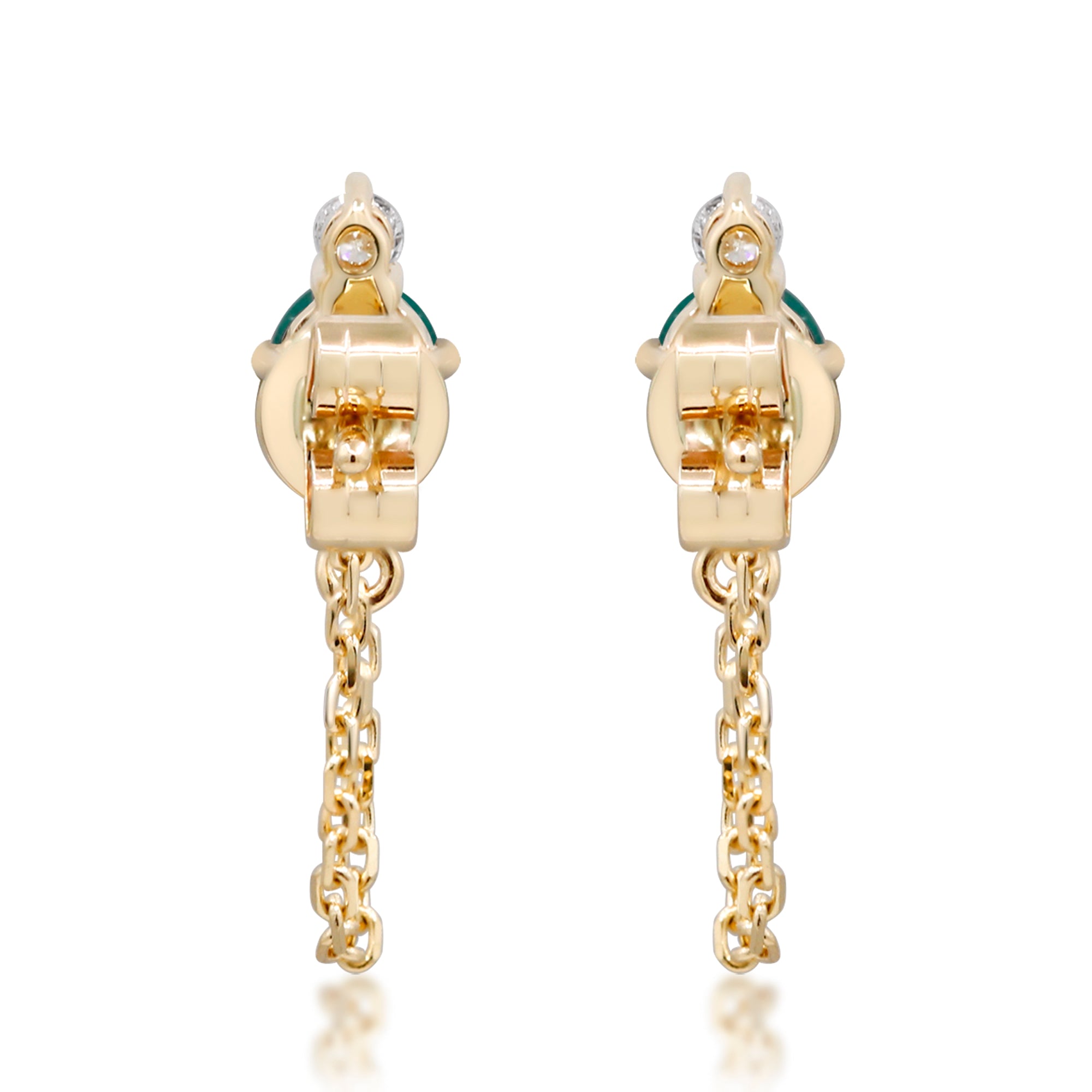 Decorate yourself in elegance with this Earring is crafted from 14-karat Yellow Gold by Gin & Grace. This Earring is made up of Round Zambian Emerald (2 pcs) 0.34 carat, Round-cut White Diamond (4 Pcs) 0.10 Carat. This Earring is weight 1.02 grams. This delicate Earring is polished to a high finish shine.