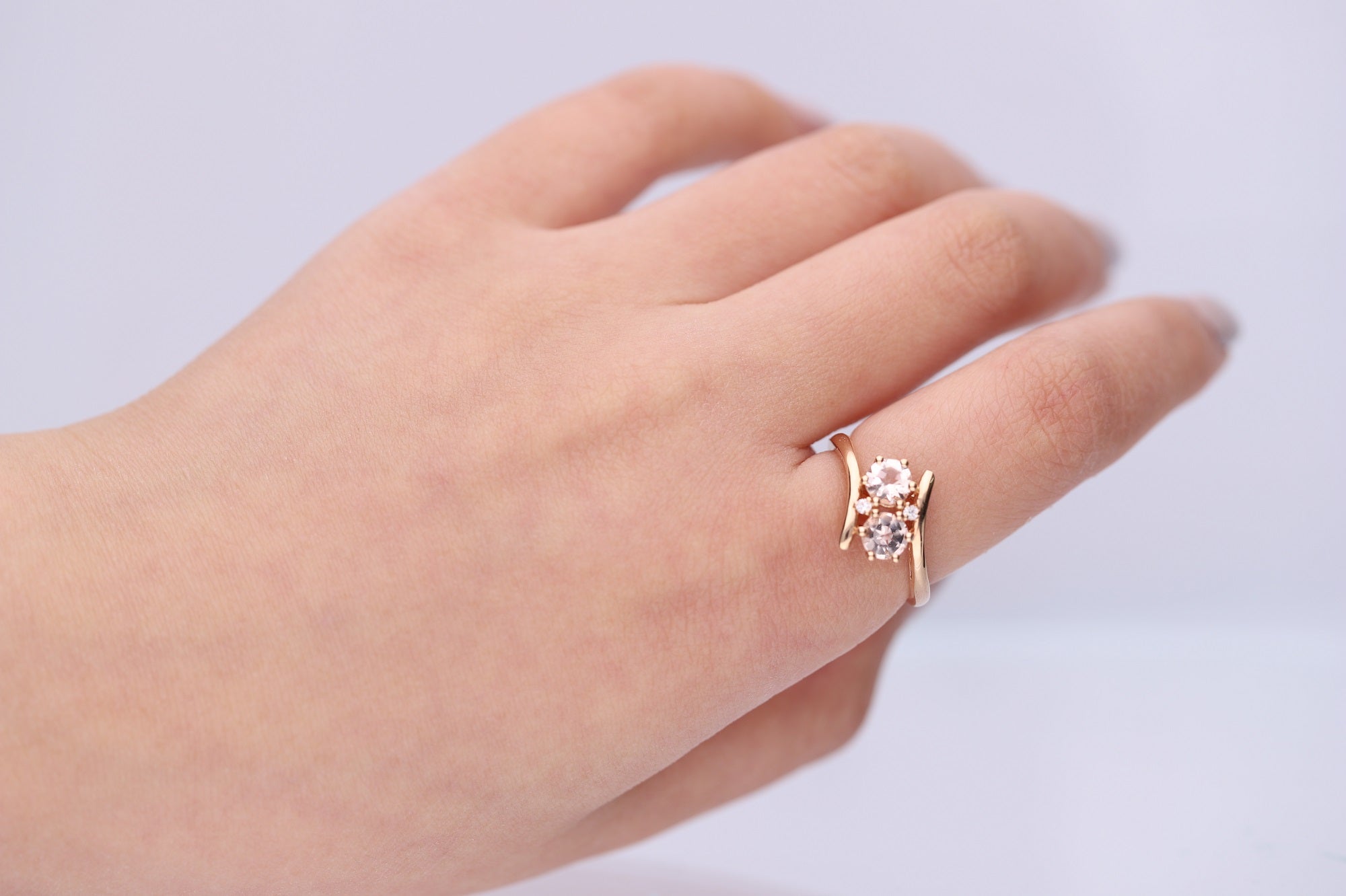 Decorate yourself in elegance with this Ring is crafted from 10K Rose Gold by Gin & Grace Ring. The jewelry boasts Round-Cut cabochon setting white color Natural Morganite (2 pcs) 0.93 Carat and Round-Cut prong setting Diamond (2 pcs) 0.03 Carat. This Ring is weight 2.27 grams. This delicate Ring is polished to a high finish shine. Simple Stud clasps keep these Ring securely fastened.