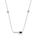 Decorate yourself in elegance with this Necklace is crafted from 14K White Gold by Gin & Grace. This Necklace is made up of Baguette-Cut Blue Sapphire (1 pcs) 0.15 carat and Round-cut White Diamond (7 Pcs) 0.08 Carat. This Necklace is weight 2.20 grams. This delicate Necklace is polished to a high finish shine.