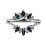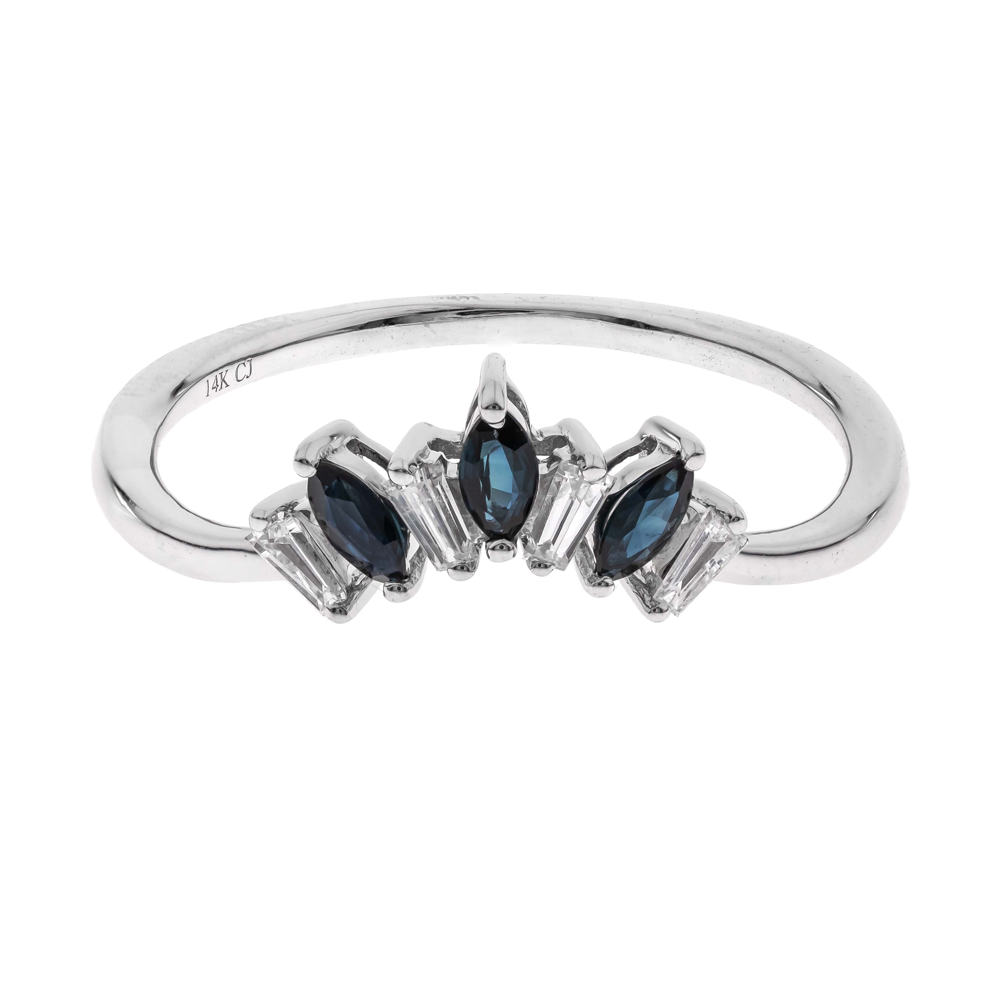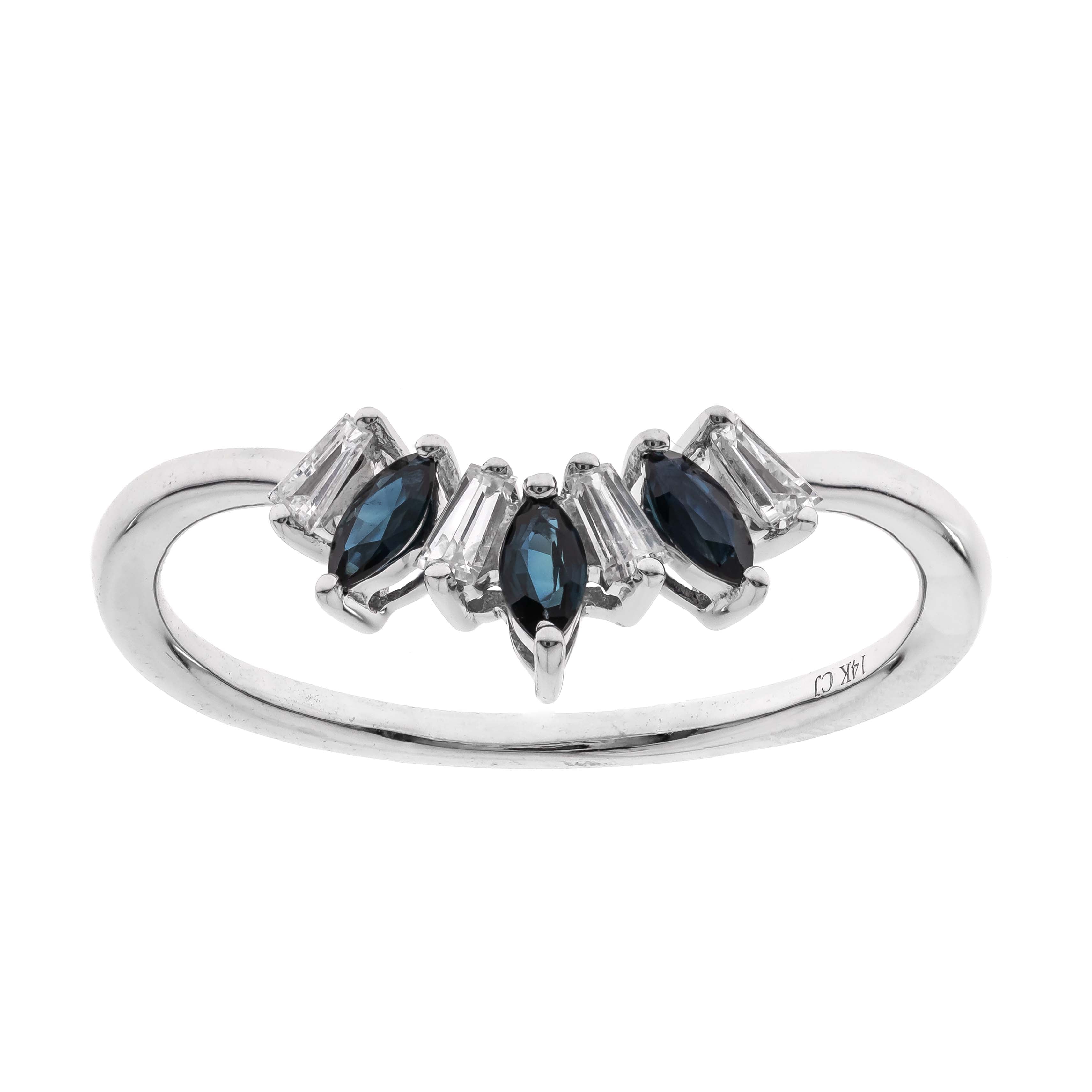 Decorate yourself in elegance with this Ring set which is crafted from 14-karat white Gold by Gin & Grace. This Ring is made up of Marquise-Cut Blue sapphire (6 Pcs) 0.77 carat and round-cut white diamond (8 pcs) 0.20 carat. This Ring Set weighs 3.35 grams. This delicate Ring is polished to a high finish shine.