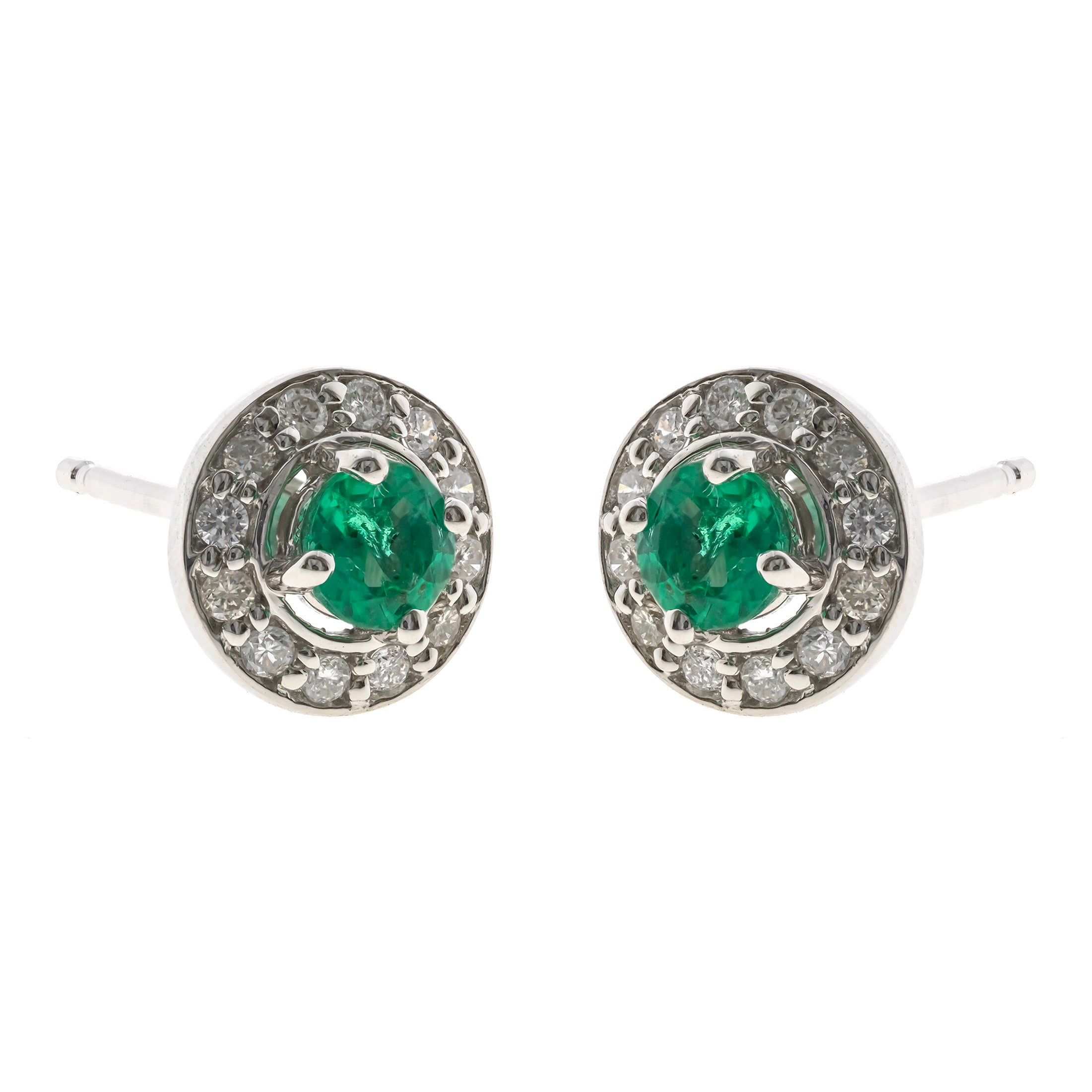 Anna 10K White Gold Round-Cut Zambian Emerald Earring