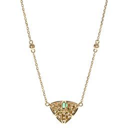 Decorate yourself in elegance with this Necklaces is crafted from 14-karat Yellow Gold by Gin & Grace Necklaces. This Necklaces is made up of Round-Cut Zambian Emerald (24 pcs) 0.47 carat and Round-cut Diamond (16 Pcs) 0.11 Carat. This Necklaces is weight 2.60 grams. This delicate Necklaces is polished to a high finish shine.Â