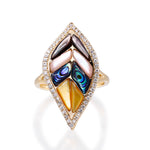 Decorate yourself in luxury with this Gin & Grace ring. The 14k Yellow Gold jewelry boasts Fancy-Shape Prong Setting Mother of Pearl stone (8 pcs) 1.78 Carat, and Round-Cut Prong Setting (50 pcs) 0.28 Carat white diamond accent stones for a glimmering design. This ring weighs 4.69 grams. Natural Diamonds with good quality I1-I2.One of a kind Crafted with 14K Yellow Gold , this delicate Ring is polished to a high finish shine.