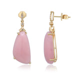 Adorn your ears with our exquisite pink opal earrings, featuring a total weight of 18.70 carats. Each earring showcases a stunning pink opal, celebrated for its soft, delicate hues and unique texture. Enhanced by 10 shimmering round diamonds, these earrings offer a brilliant contrast that elevates their elegance. Perfect for both casual outings and formal events, these earrings are a timeless addition to any jewelry collection. Embrace the beauty of pink opal and let these earrings be a captivating highlight of your style.