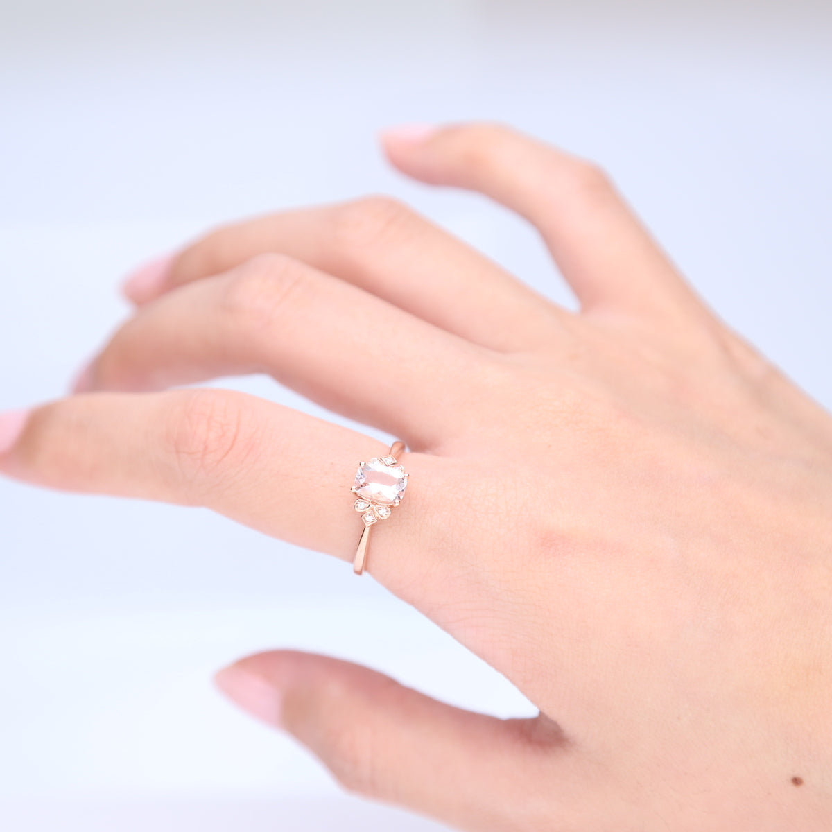 Stunning, timeless and classy eternity Unique ring. Decorate yourself in luxury with this Gin & Grace ring. The 10K Rose Gold jewelry boasts Cushion-Cut Prong Setting Genuine Madagascar Morganite (1pcs) 0.83 Carat and Round-Cut Prong Setting Diamond (6 pcs) 0.03 Carat accent stones for a lovely design. This ring is weight 1.82 grams. Crafted with 10k Rose Gold, this delicate Ring is polished to a high finish shine