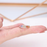 Stunning, timeless and classy eternity Unique Ring. Decorate yourself in luxury with this Gin & Grace Ring. The 14K Rose Gold jewelry boasts Pear-Cut Prong Setting Genuine Multi Sapphire (5 pcs) 0.98 Carat, along with Natural Round cut white Diamond (30 Pcs) 0.16 Carat, accent stones for a lovely design. This Ring is weight 1.86 grams. Crafted with 14K Rose Gold, this delicate Ring is polished to a high finish shine.