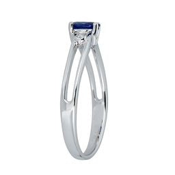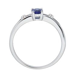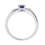 Stunning, timeless and classy eternity Engagement ring. Decorate yourself in luxury with this Gin & Grace ring. This ring is made up of 4X5 mm Oval-Cut Prong Setting Genuine Ceylon Blue Sapphire (1 pcs) 0.38 Carat and Round-Cut Prong Setting Diamond (2 pcs) 0.02 Carat accent stones for a lovely design. This ring is weight 1.97 grams. The ring is crafted of shining 14-karat White Gold and is completed by a highly polished finish.