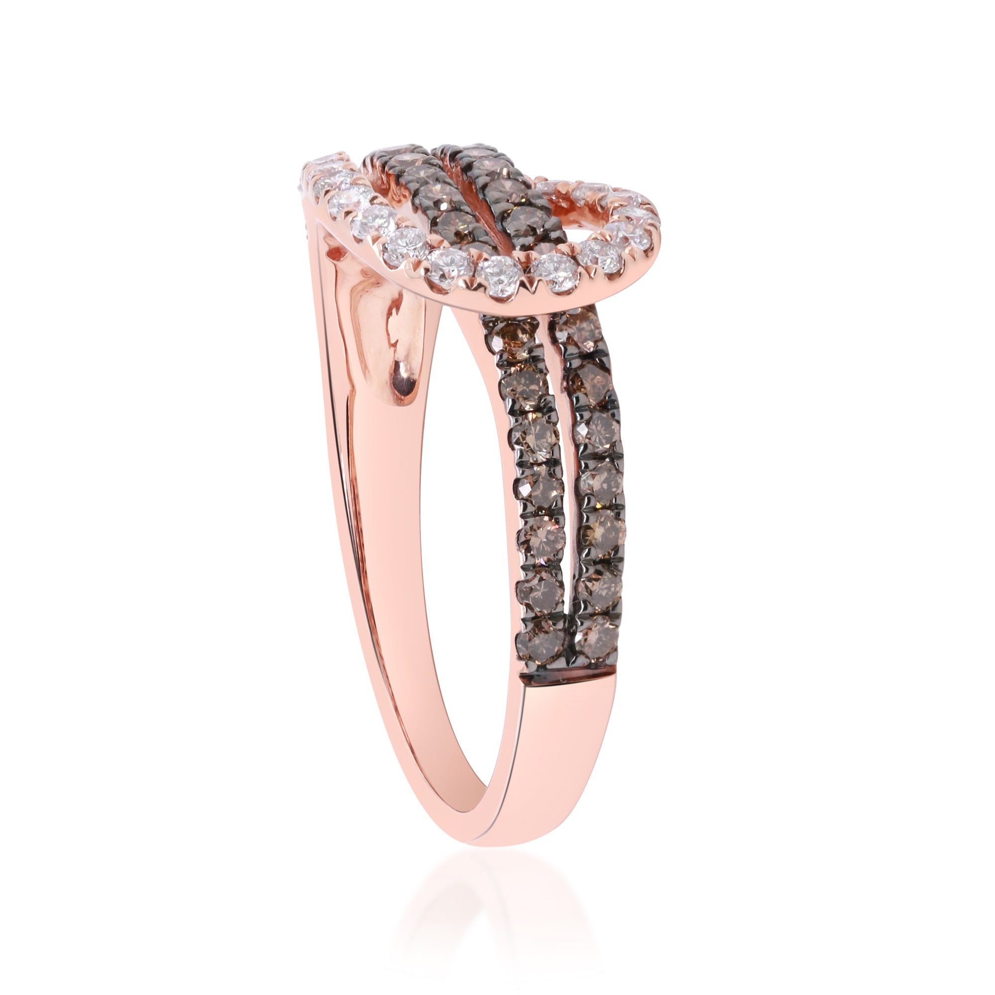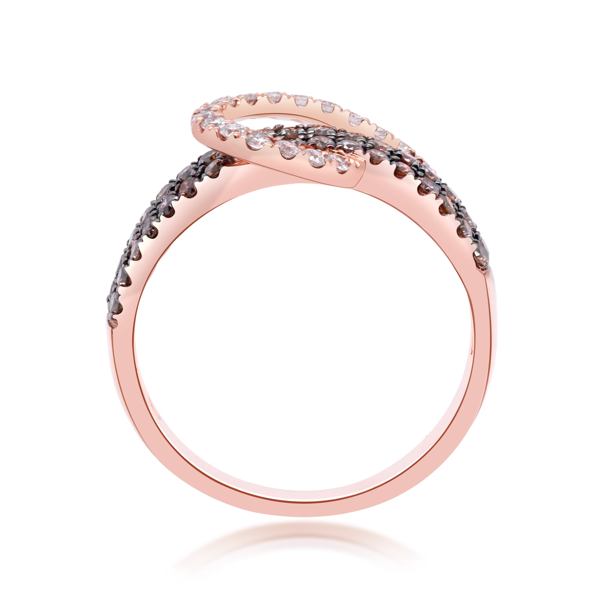Decorate yourself in elegance with this Ring is crafted from 10K Rose Gold by Gin & Grace Ring. This Ring is made up of Round-Cut White & Brown Diamond (54 Pcs) 0.67 Carat. This Ring is weight 2.73 grams. This delicate Ring is polished to a high finish shine.