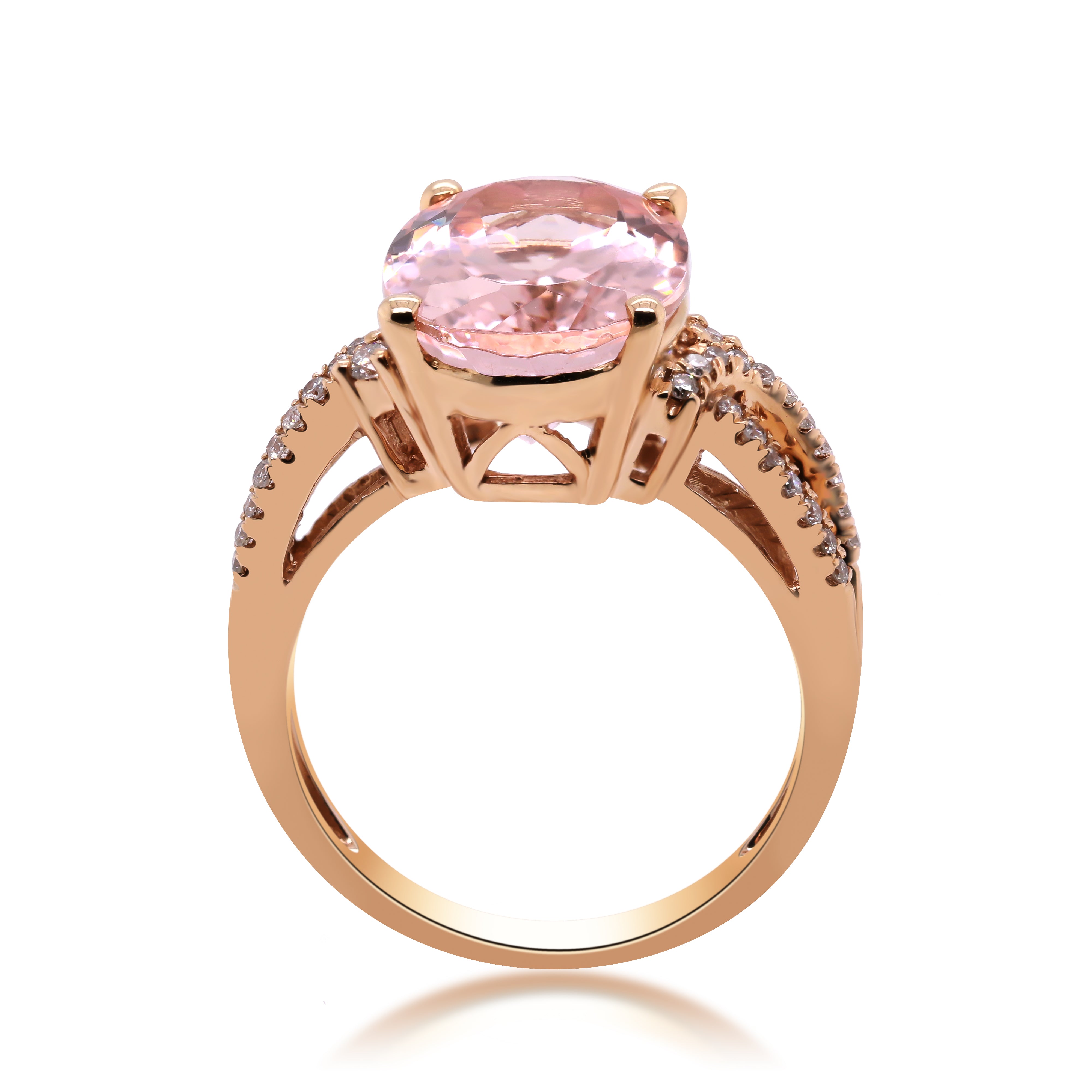 Constructed of shiny 14k rose gold, this sophisticated bauble is the perfect way to adorn yourself in luxury and elegance. The stunning ring is enriched with 1/4 carat of sparkling diamonds. Gemstone colors: Gemstone shapes: Oval-cut One Prong-set Oval-cut Gin & Grace Genuine Morganite measures 10 mm wide x 14 mm long Gemstone weight:5.17 carats Total gemstone weight:5.17 carats Diamonds:38 Diamond cut: Round Diamond measurements: Each measures 1 mm Diamond weight: 0.22 carat Color: G-H Clarity: I1-I2 Setting: Prong Metal: 14K Rose Gold Finish: High polish Metal weight: 4.40 grams Ring setting dimensions: 18mm wide x 22 mm long x 4 mm deep Band dimensions: 2 mm wide