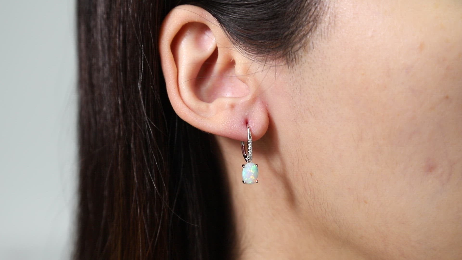 Aya 10K White Gold Oval-Cut Natural African Opal Earring