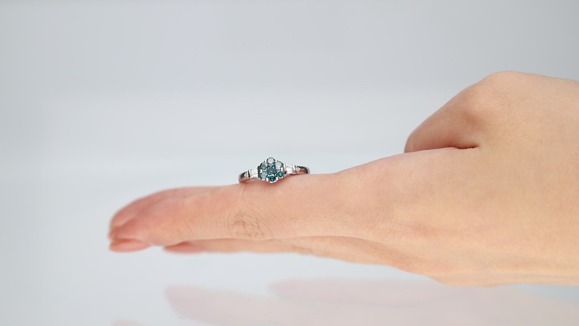 Charley 10K White Gold Round Cut Blue Diamond Ring