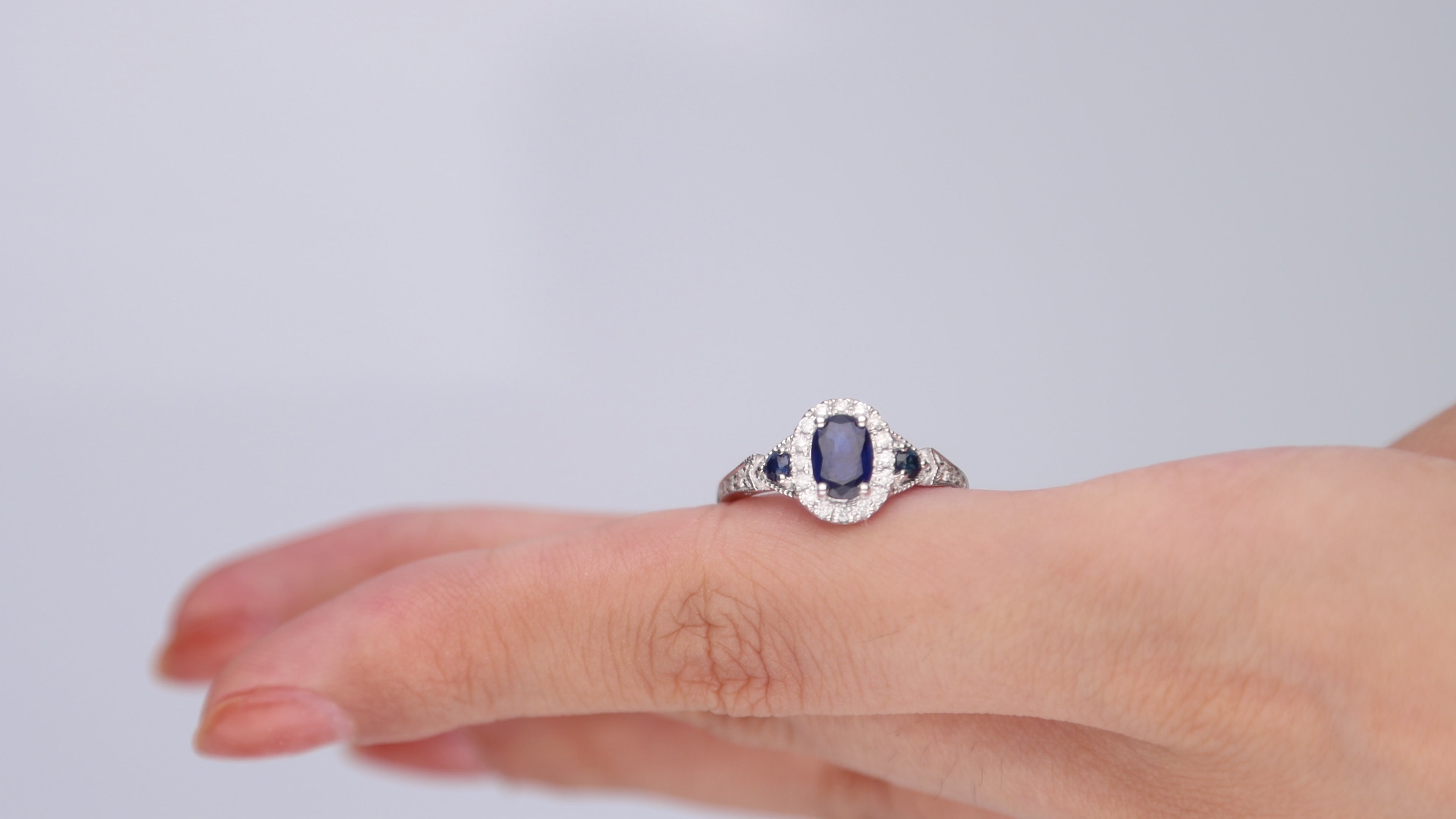 Fiona 14K White Gold Oval-Cut Ceylon Blue Sapphire Ring