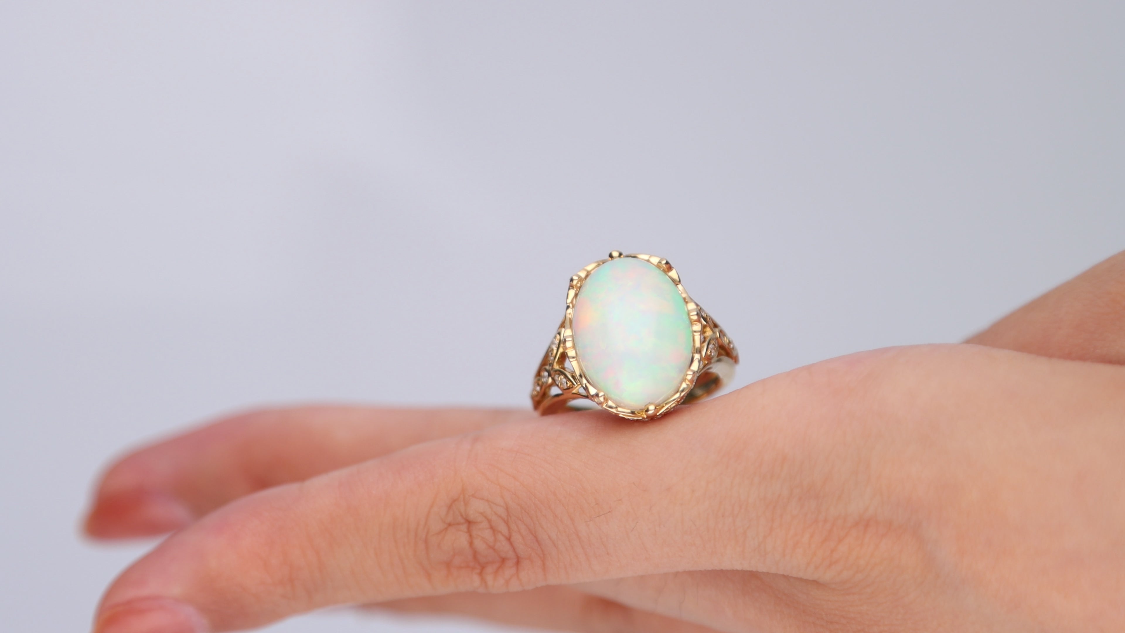 Maya 14K Yellow Gold Oval-Cab African Opal Ring
