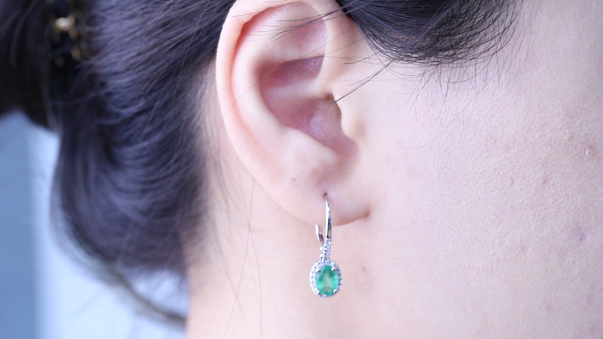 Rosalie 14K White Gold Oval-Cut Natural Zambian Emerald Earring