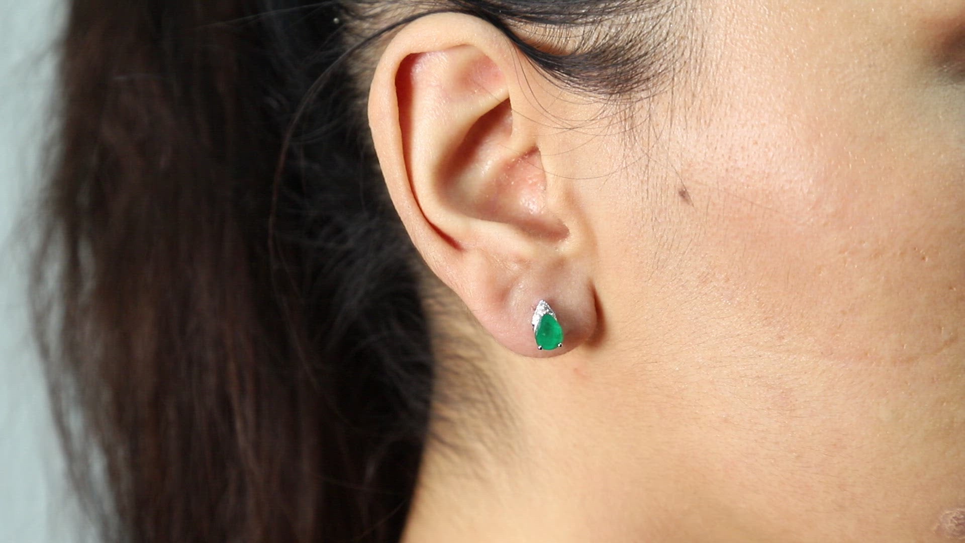 Salma 14K White Gold Pear-Cut Natural Zambian Emerald Earring