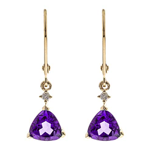 Decorate yourself in elegance with this Earring is crafted from 14K Yellow Gold by Gin & Grace Earring. The jewelry boasts 6MM Trillion-Cut prong setting Brazilian Amethyst (2 pcs) 1.34 Carat and Round-Cut prong setting Diamond (2 pcs) 0.03 Carat. This Earring is weight 1.18 grams. This delicate Earring is polished to a high finish shine. Simple leverback clasps keep these earrings securely fastened.