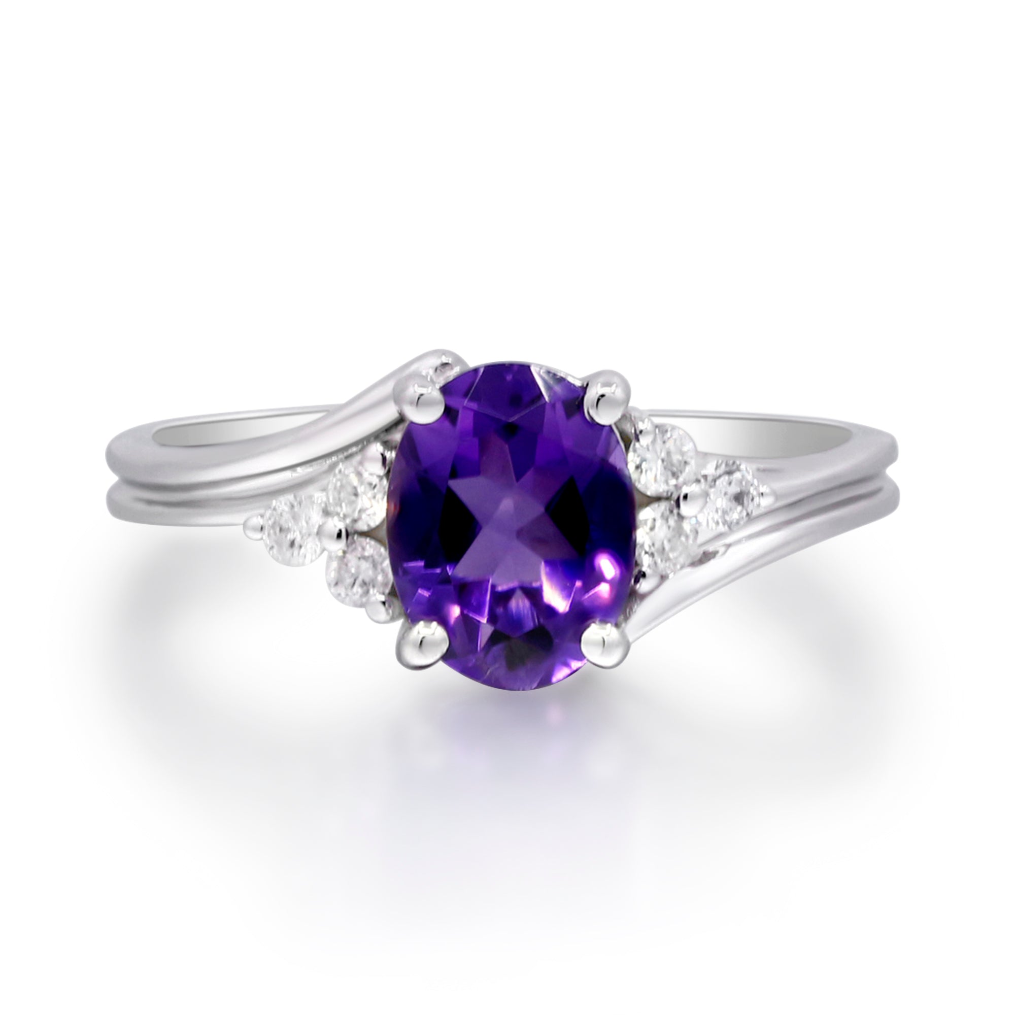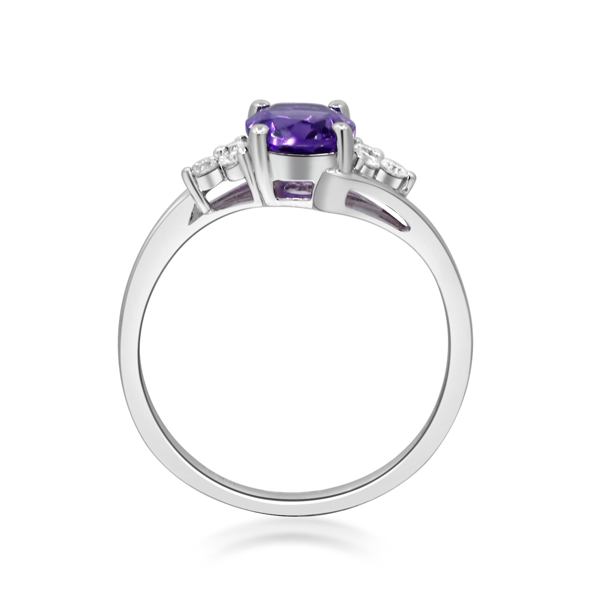 Decorate yourself in elegance with this Ring is crafted from 10-karat white gold oval-cut Amethyst (1 pcs) 1.14 carat and Round-cut White Diamond (6 Pcs) 0.13 carat. This Ring is weight 2.16 grams. This delicate Ring is polished to a high finish shine.