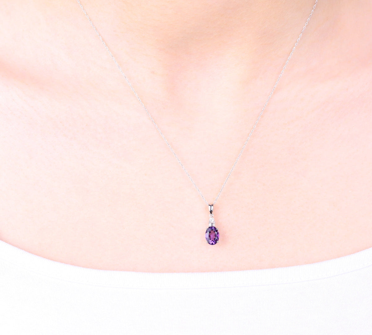 Magnolia 10K White Gold Oval-Cut Amethyst Pendant