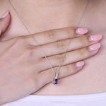 Decorate yourself in elegance with this Pendant is crafted from 10-karat White Gold by Gin & Grace. This Pendant is made up of 7.0 mm Pear-cut Brazilian Amethyst (1 pcs) 0.99 carat and Round-cut White Diamond (2 Pcs) 0.07 Carat. This Pendant is weight 0.52 grams. This delicate Pendant is polished to a high finish shine.