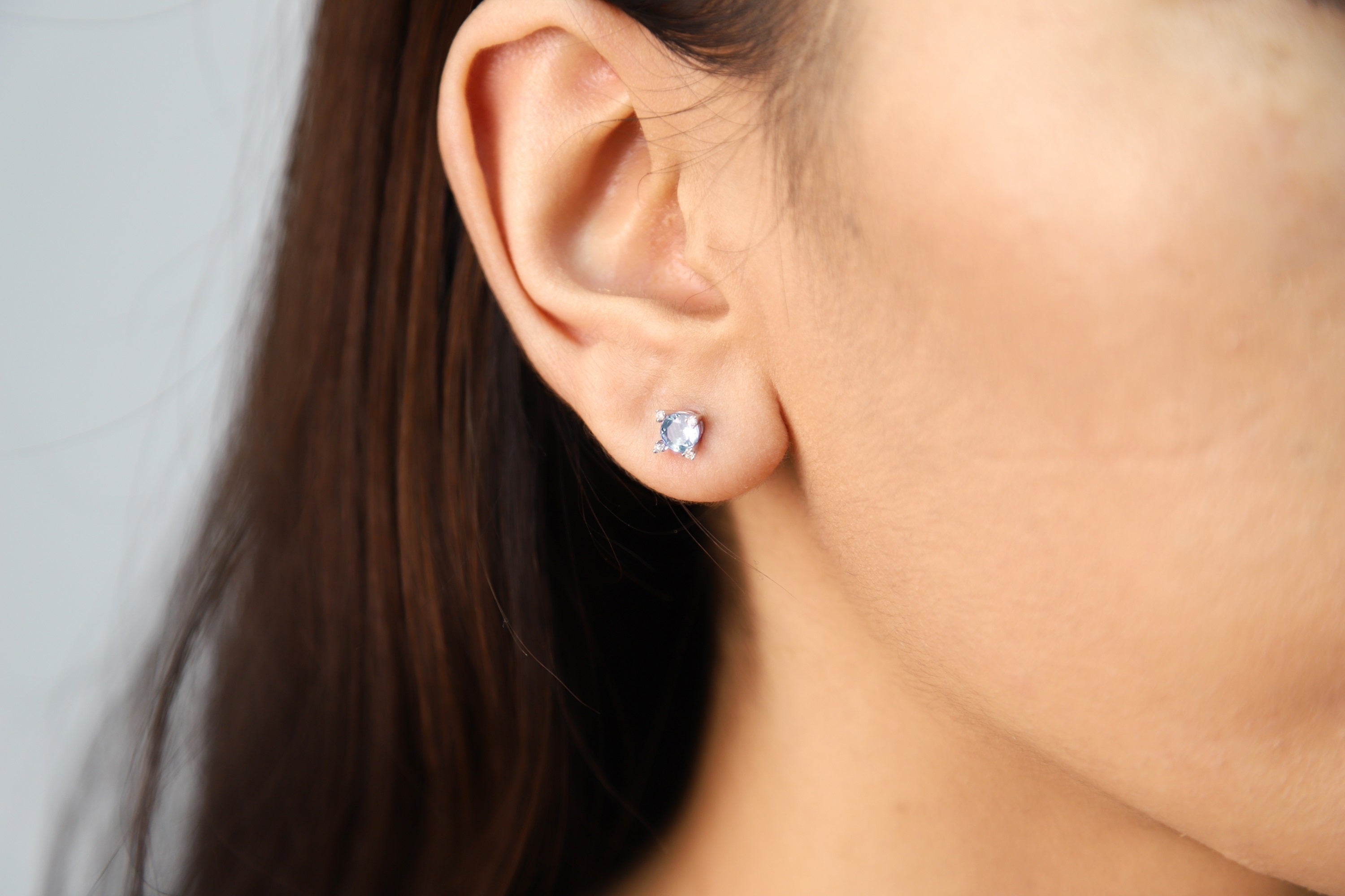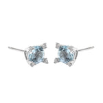 Decorate yourself in elegance with this Earring is crafted from 10-karat White Gold by Gin & Grace Earring. This Earring is made up of Round-Cut Brazilian Aquamarine (2 Pcs) 1.15 Carat and Round-cut White Diamond (8 Pcs) 0.04 Carat. This Earring is weight 0.92 grams. This delicate Earring is polished to a high finish shine.