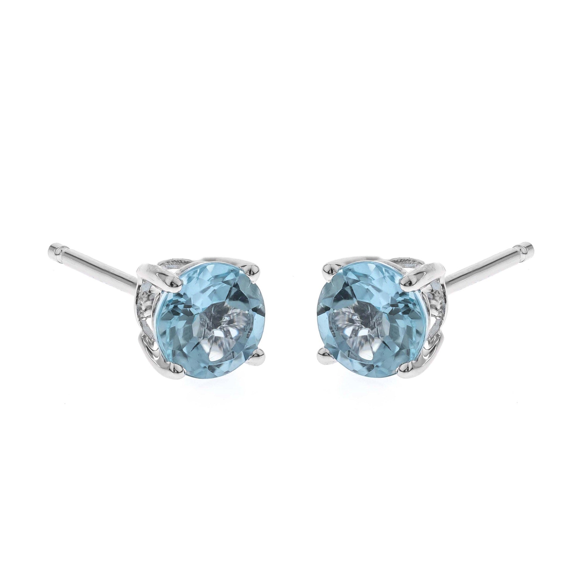 Decorate yourself in elegance with this Earring is crafted from 14-karat White Gold by Gin & Grace Earring. This Earring is made up of 5MM Round-Cut Prong setting Brazilian Aquamarine (2pcs) 1.05 Carat. This Earring is weight 0.77 grams. This delicate Earring is polished to a high finish shine. Simple Stud clasps keep these earrings securely fastened.
