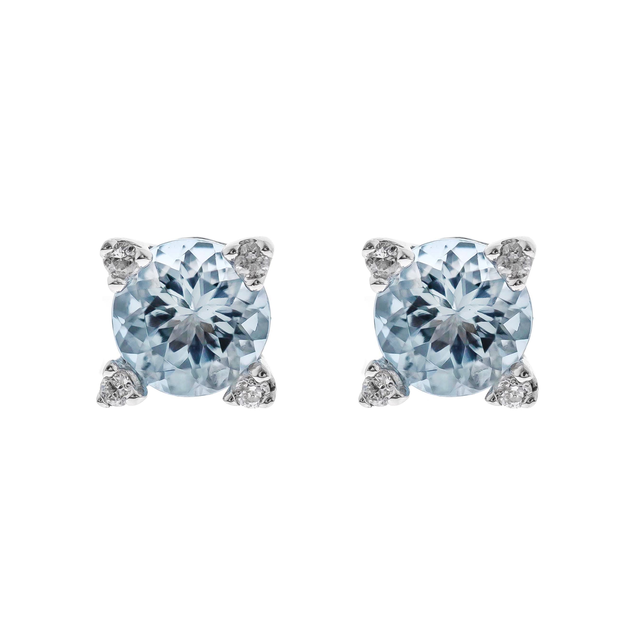 Decorate yourself in elegance with this Earring is crafted from 10-karat White Gold by Gin & Grace Earring. This Earring is made up of Round-Cut Brazilian Aquamarine (2 Pcs) 1.15 Carat and Round-cut White Diamond (8 Pcs) 0.04 Carat. This Earring is weight 0.92 grams. This delicate Earring is polished to a high finish shine.
