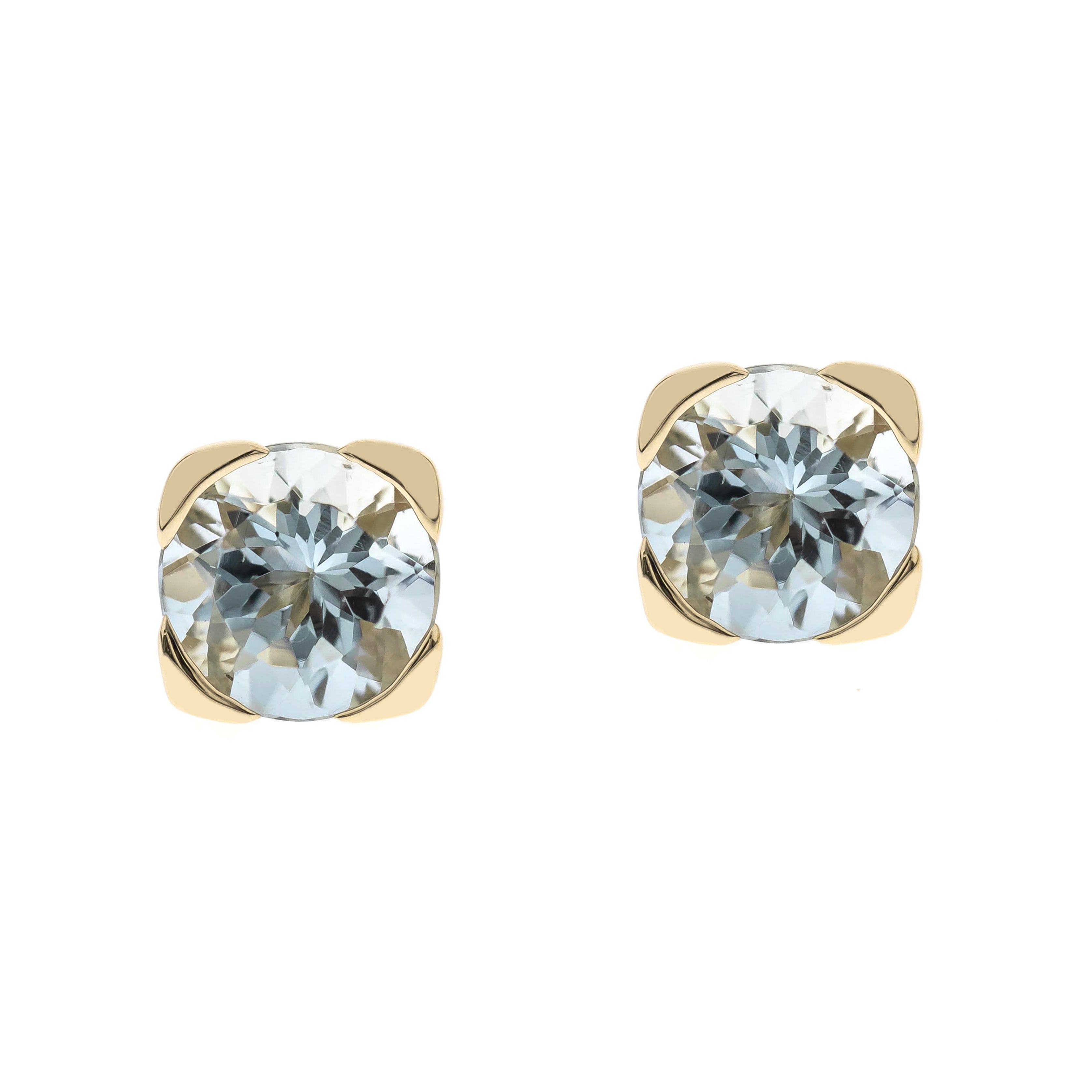 Decorate yourself in elegance with this Earring is crafted from 10-karat Yellow Gold by Gin & Grace. This Earring is made up of Round-Cut Brazilian Aquamarine (2 pcs) 1.54 carat. This Earring is weight 0.96 grams. This delicate Earring is polished to a high finish shine.