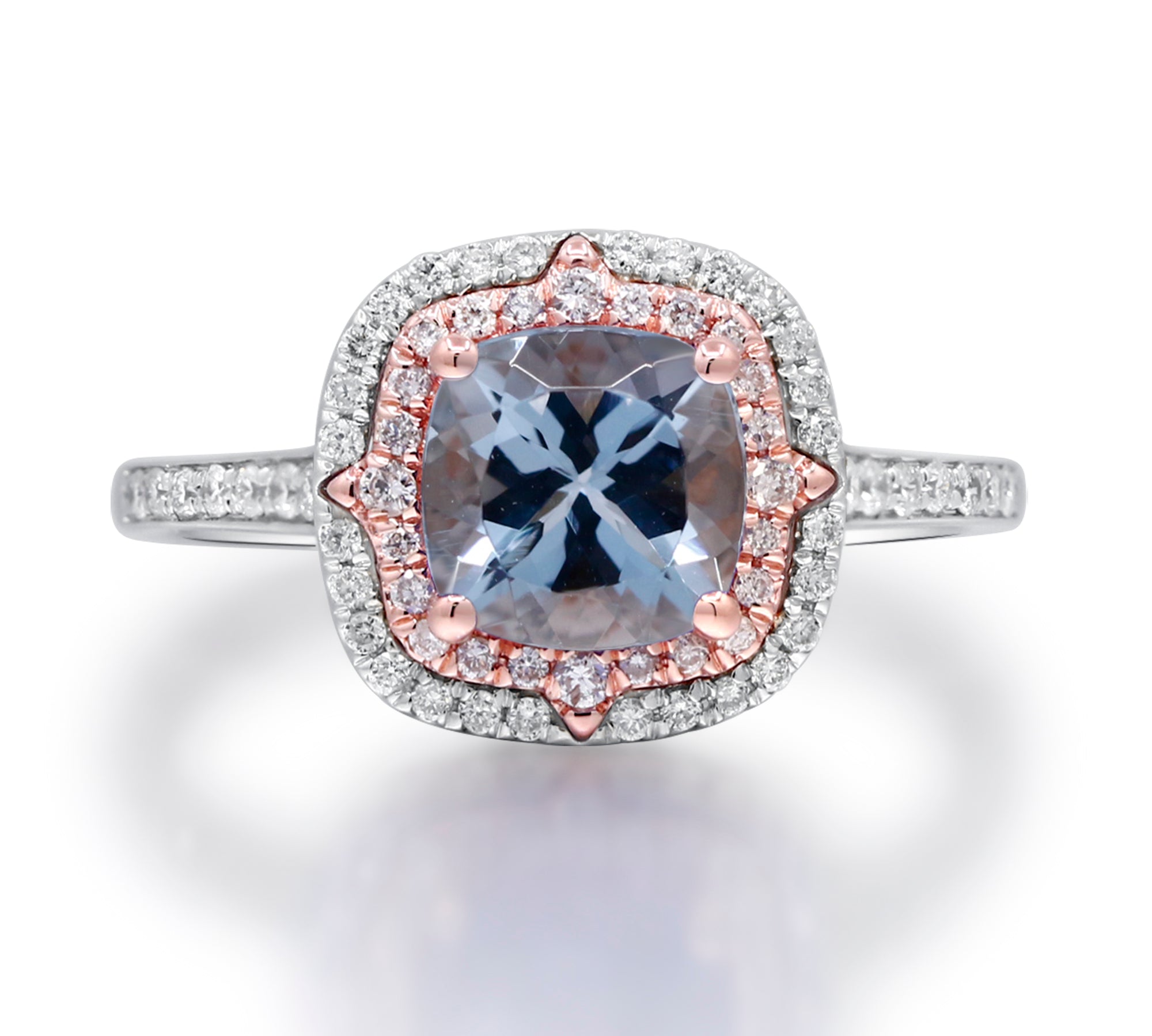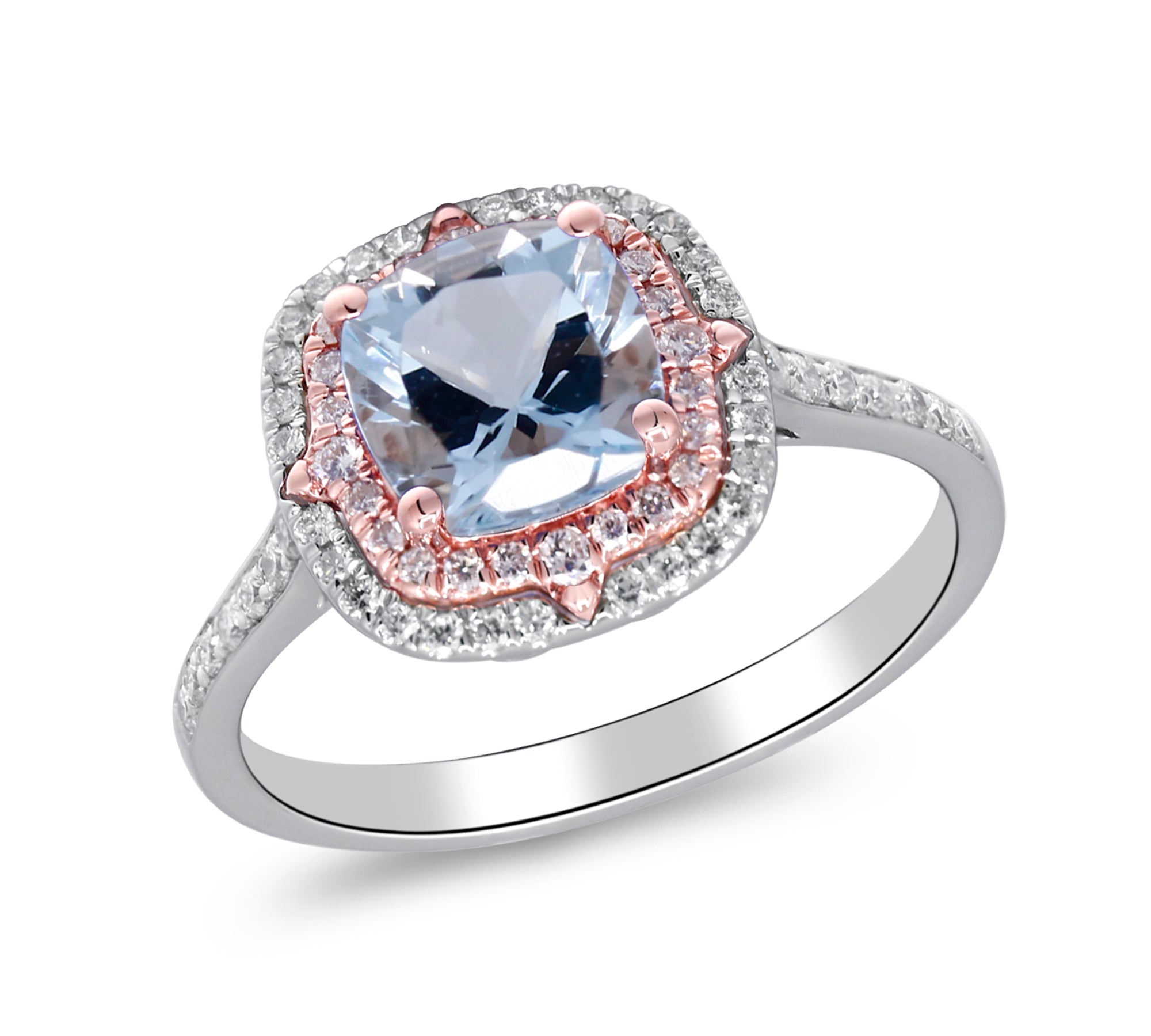 Zoey 14K Two Tone Gold Cushion-Cut Brazilian Aquamarine Ring