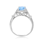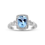 Decorate yourself in elegance with this Ring crafted from 14-karat white Gold by Gin & Grace. This Ring is made up of 6*8 Brazilian Aquamarine Cushion-cut (1 pcs) 1.31 and Round-cut Diamond (44 pcs) 0.22 Carat. This Ring weighs 2.73 grams. This delicate Ring is polished to a high finish shine.