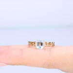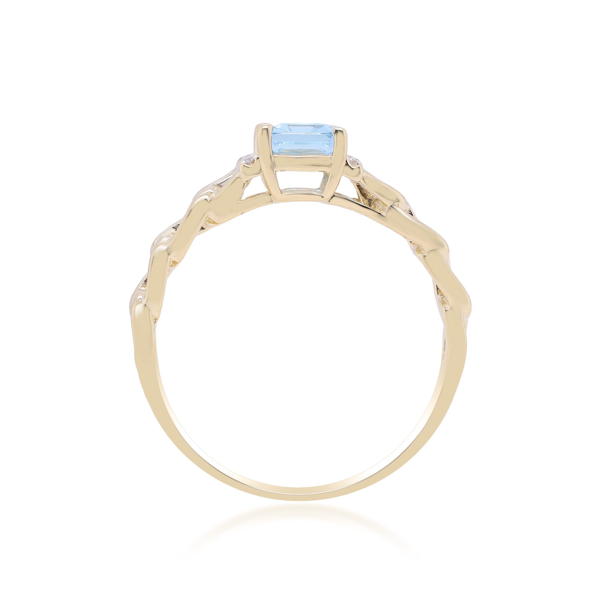 Decorate yourself in elegance with this Ring is crafted from 14-karat Yellow Gold by Gin & Grace. This Ring is made up of Emerald-cut Aquamarine (1 Pcs) 1.01 carat and Round-cut White Diamond (6 Pcs) 0.04 carat. This Ring is weight 2.55 grams. This delicate Ring is polished to a high finish shine.