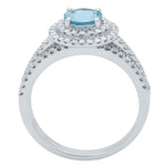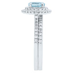A halo of sparkling white diamonds surrounds a peerless Gin & Grace Genuine aquamarine stone in this effulgent 14k white gold ring. From the Latin meaning 'water of the sea,' this blue stone sparkles and shines with iridescent individuality. Details: Blue round cut gemstone fine jewelry ring Prong set Genuine aquamarine measures 6 mm Center stone weighs 0.74 carat Features 82 round cut Natural diamonds Diamond weight is 0.45 carat Diamond color G-H Diamond clarity is I1-I2 Ring is 14k white gold High polish jewelry finish Metal weight: 4.27 grams Ring setting dimensions: 18mm wide x 22 mm long x 4 mm deep Band dimensions: 2 mm wide