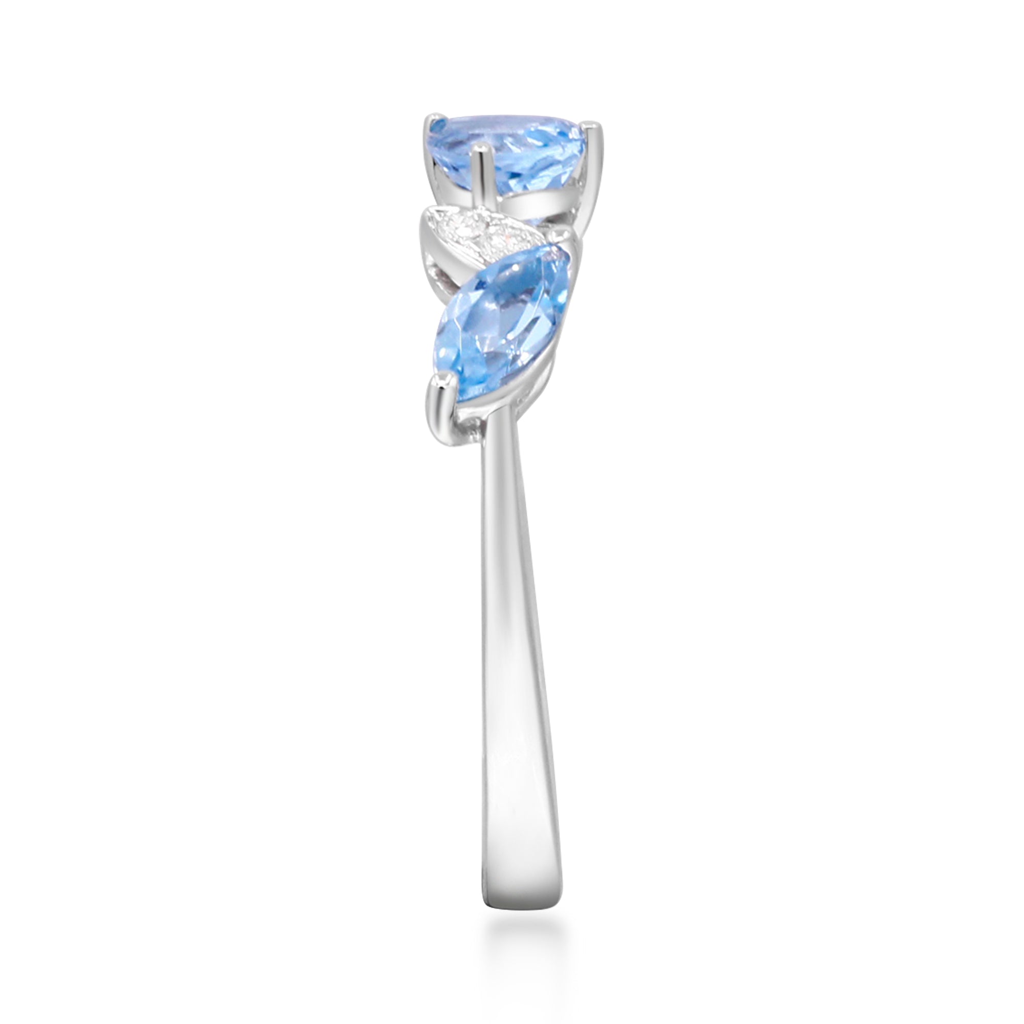Decorate yourself in elegance with this Ring is crafted from 10-karat White Gold by Gin & Grace. This Ring is made up of Pear-cut Aquamarine (1 Pcs) 0.34 carat, Marquise-cut Aquamarine (2 Pcs) 0.43 carat and Round-cut White Diamond (4 pcs) 0.06 carat. This Ring is weight 1.57 grams. This delicate Ring is polished to a high finish shine.