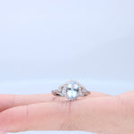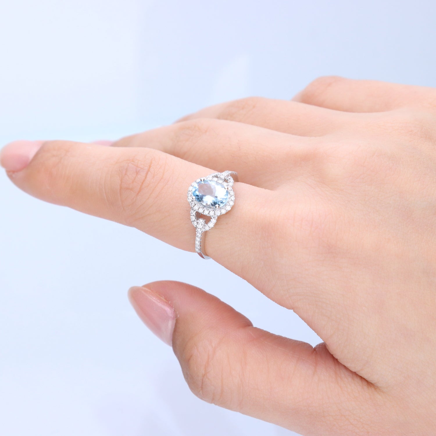 Decorate yourself in elegance with this Ring is crafted from 10K White Gold by Gin & Grace. This Ring is made up of Oval-Cut Aquamarine (1 pcs) 1.12 carat and Round-cut White Diamond (50 Pcs) 0.25 Carat. This Ring is weight 2.36 grams. This delicate Ring is polished to a high finish shine.