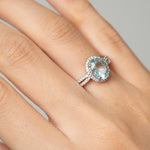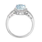 Stunning, timeless and classy eternity Engagement ring. Decorate yourself in luxury with this Gin & Grace ring. This ring is made up of 7X9 mm Oval-Cut Prong Setting Brazilian Aquamarine (1 pcs) 1.52 Carat and Round-Cut Prong Setting Diamond (56 pcs) 0.21 Carat accent stones for a lovely design. This ring is weight 2.35 grams. The ring is crafted of shining 10-karat White Gold and is completed by a highly polished finish9