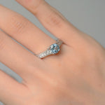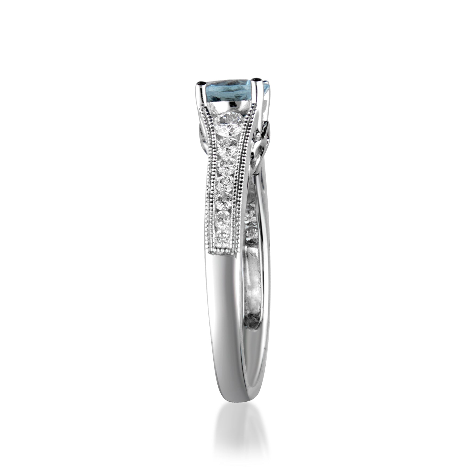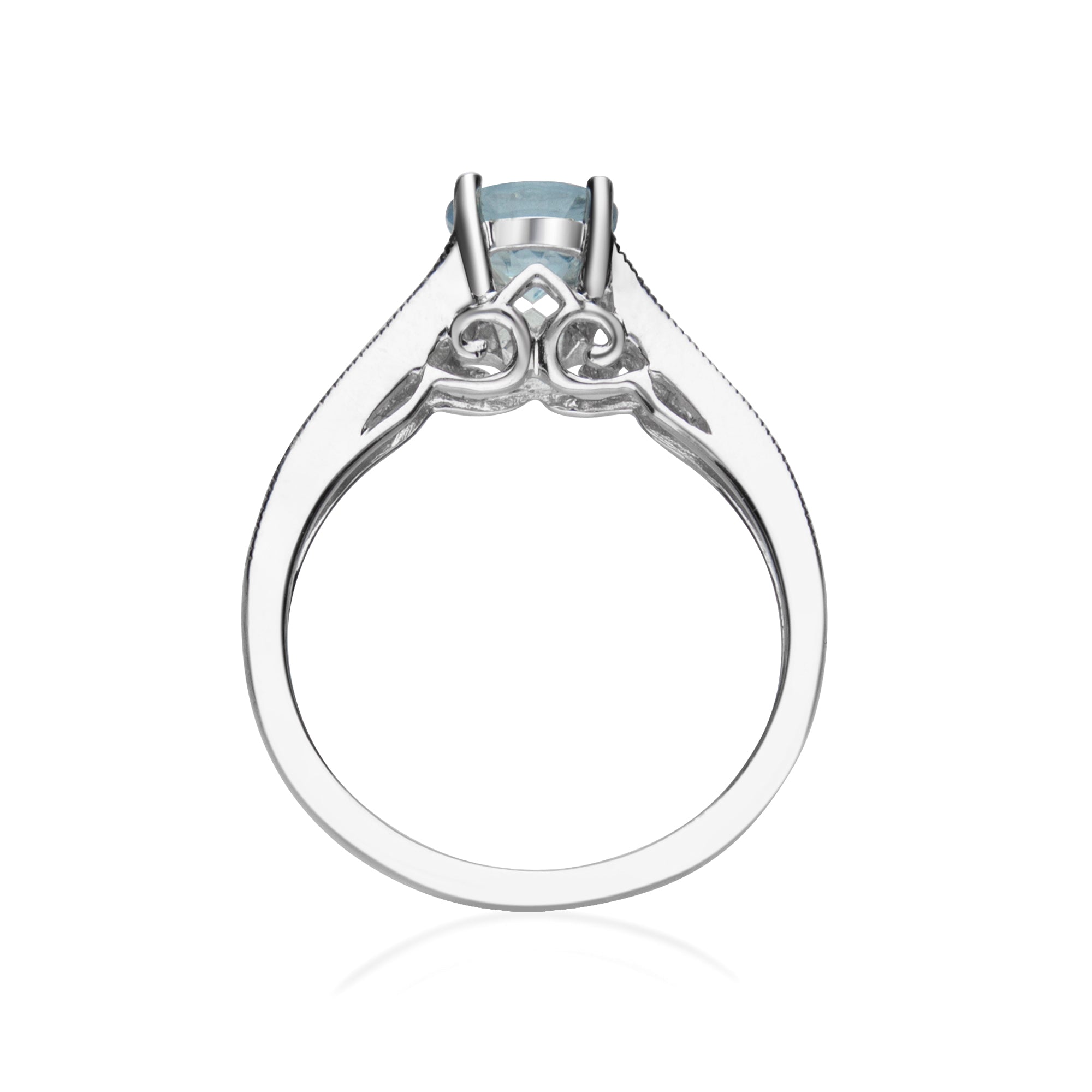 Stunning, timeless and classy eternity Engagement ring. Decorate yourself in luxury with this Gin & Grace ring. This ring is made up of Round-Cut Prong Setting Genuine Brazilian Aquamarine (1 pcs) 0.78 Carat and Round-Cut Prong Setting Diamond (14 pcs) 0.41 Carat accent stones for a lovely design. This ring is weight 2.94 grams. The ring is crafted of shining 14-karat White Gold and is completed by a highly polished finish.