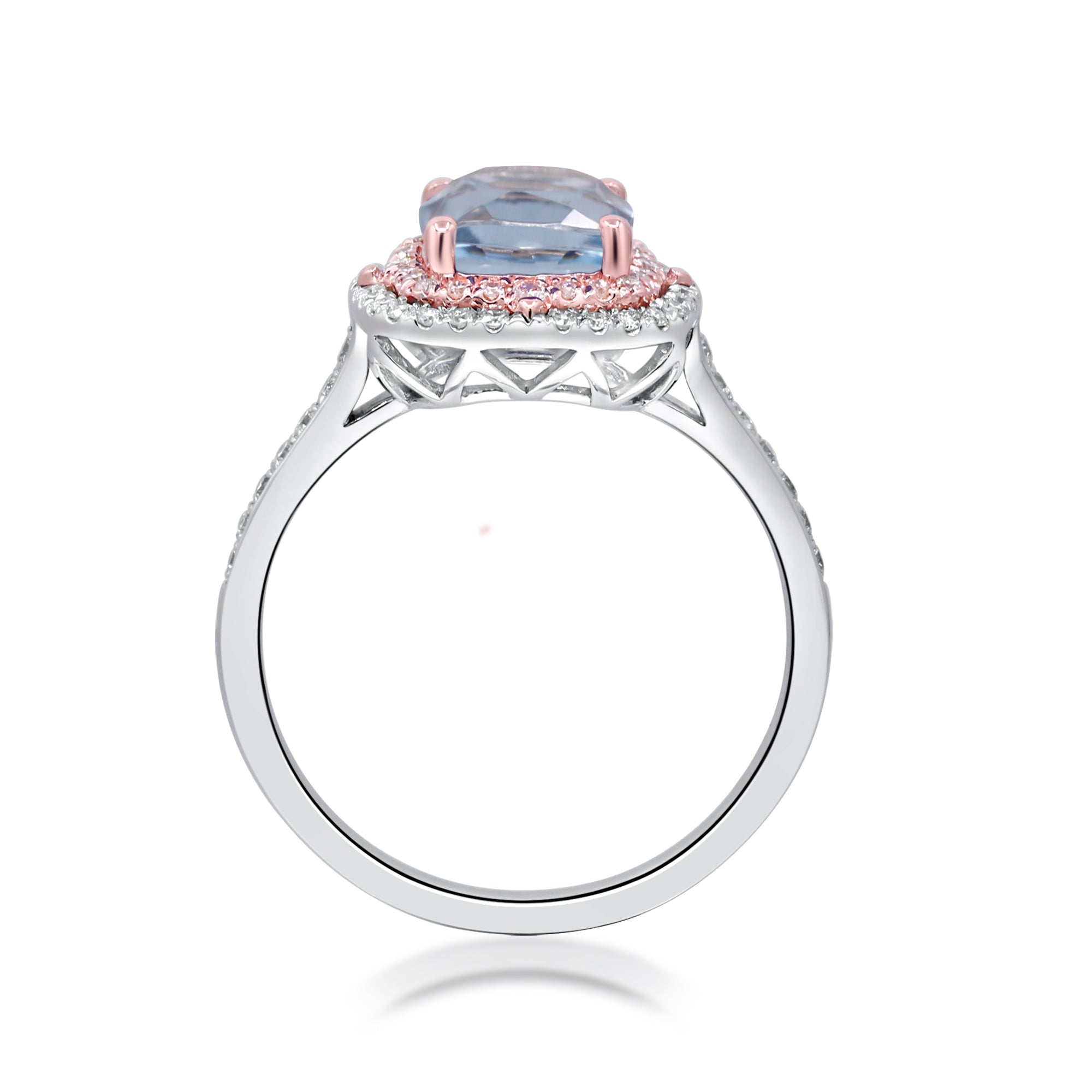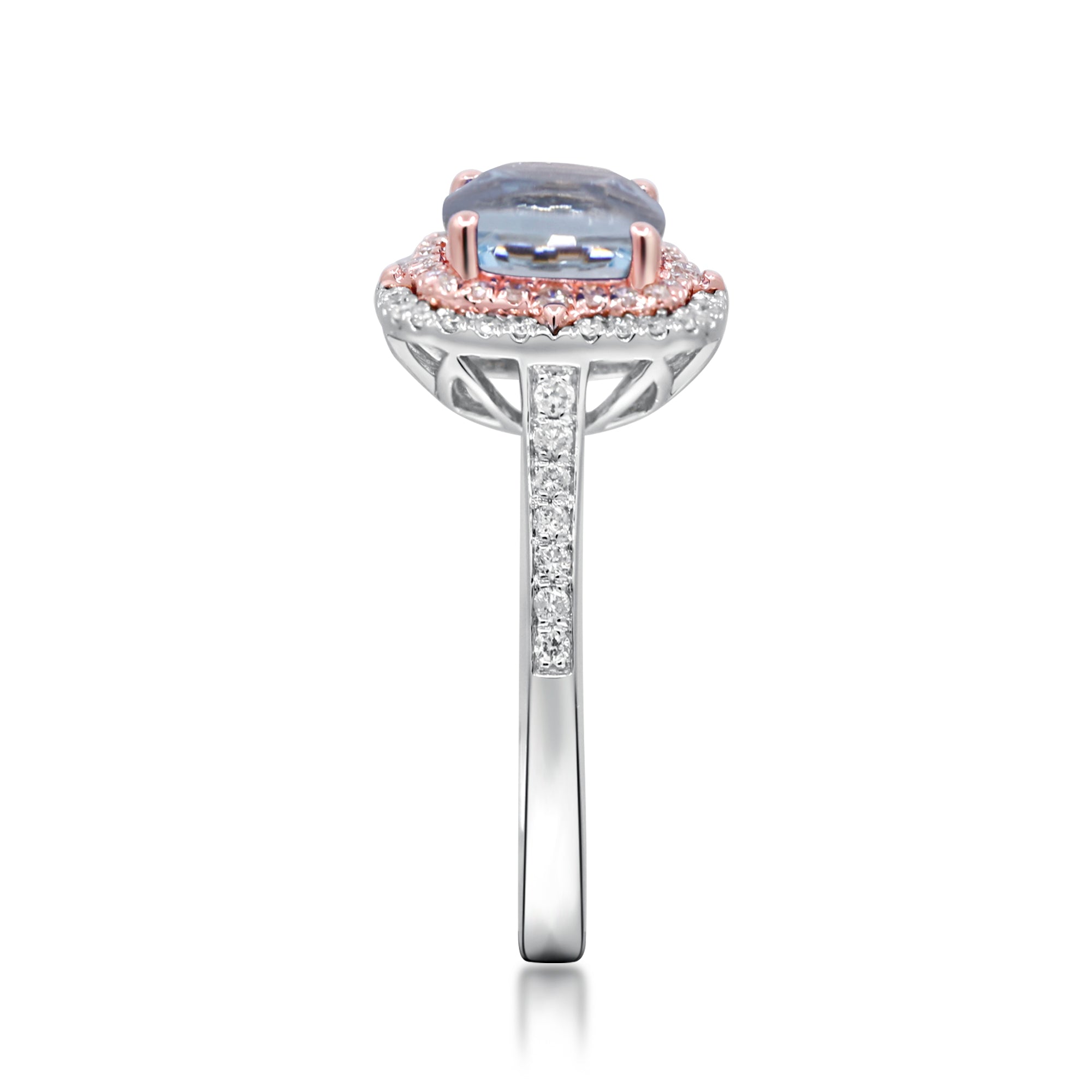 Decorate yourself in elegance with this Ring is crafted from 14KÂ Two Tone Gold by Gin & Grace. This Ring is made up of 7.0 mm Cushion-Cut Brazilian Aquamarine (1 Pcs) 1.41 carat and Round-cut White Diamond (66 Pcs) 0.30 carat. This Ring is weight 2.78 grams. This delicate Ring is polished to a high finish shine.