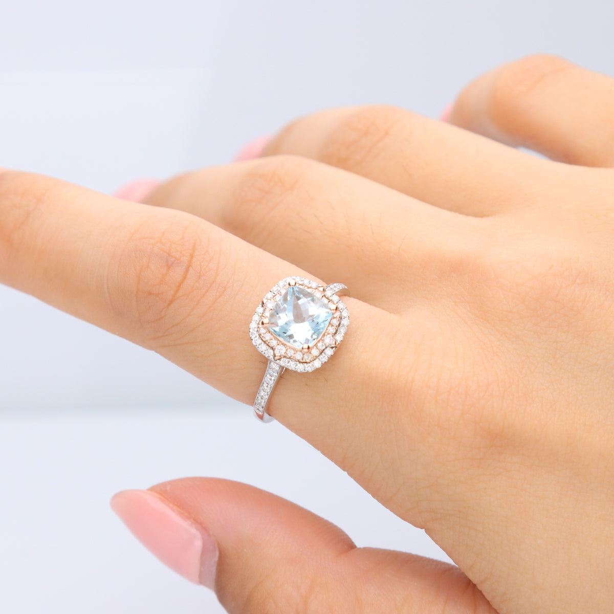 Zoey 14K Two Tone Gold Cushion-Cut Brazilian Aquamarine Ring