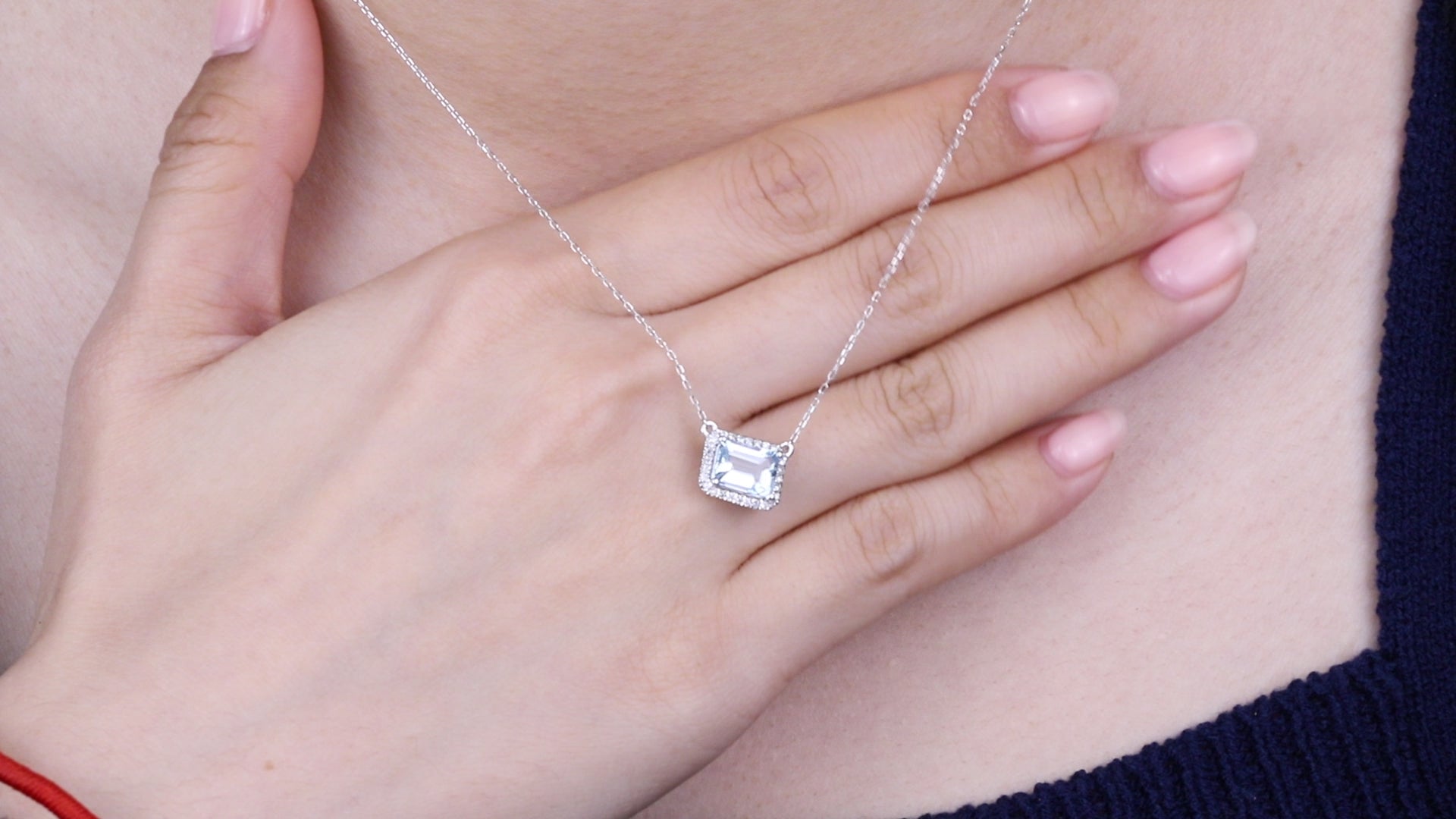 Reagan 10K White Gold Emerald-Cut Brazilian Aquamarine Pendant